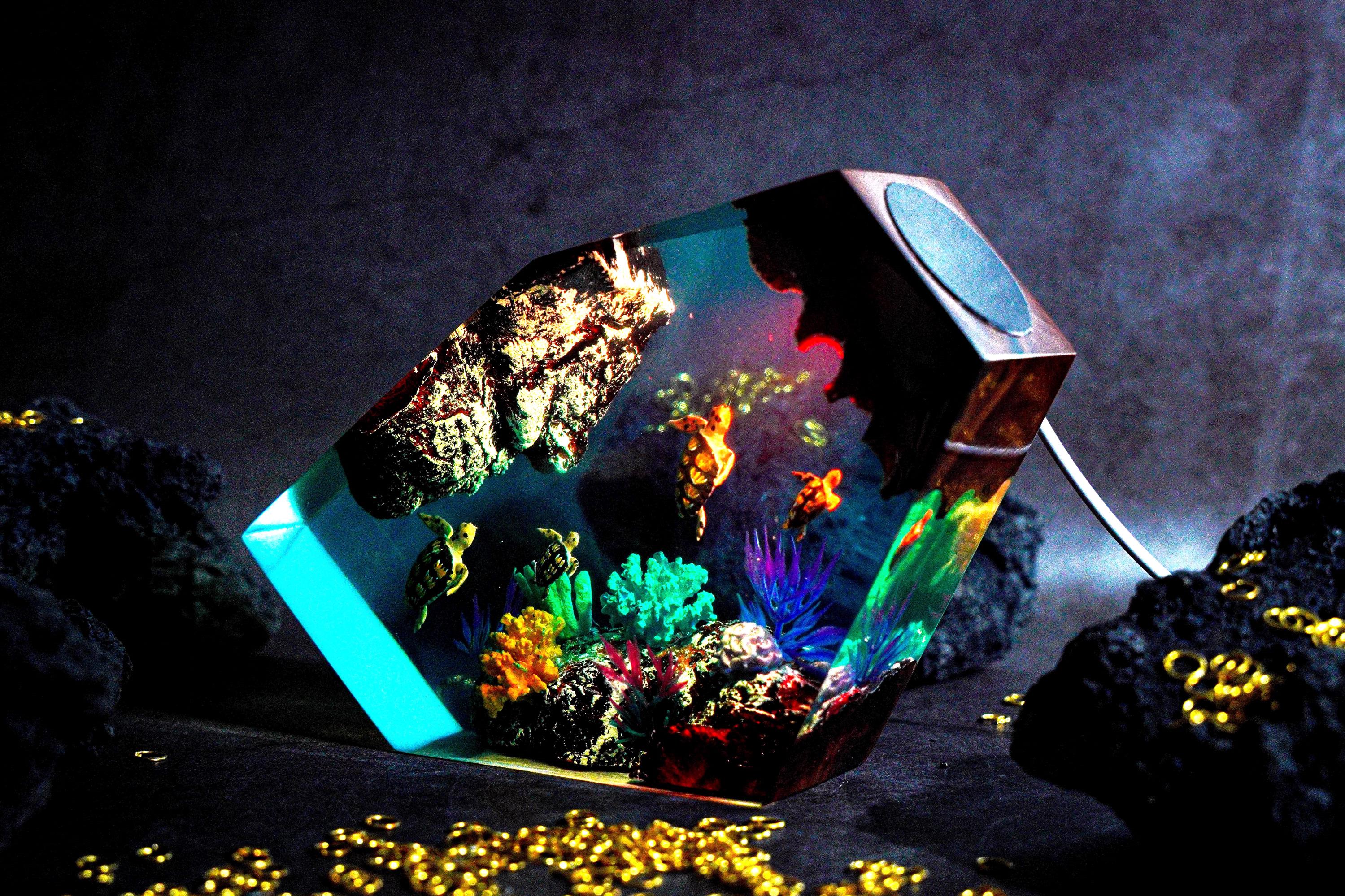 Lampada in resina epossidica fatta a mano: subacquei, barriera cora...