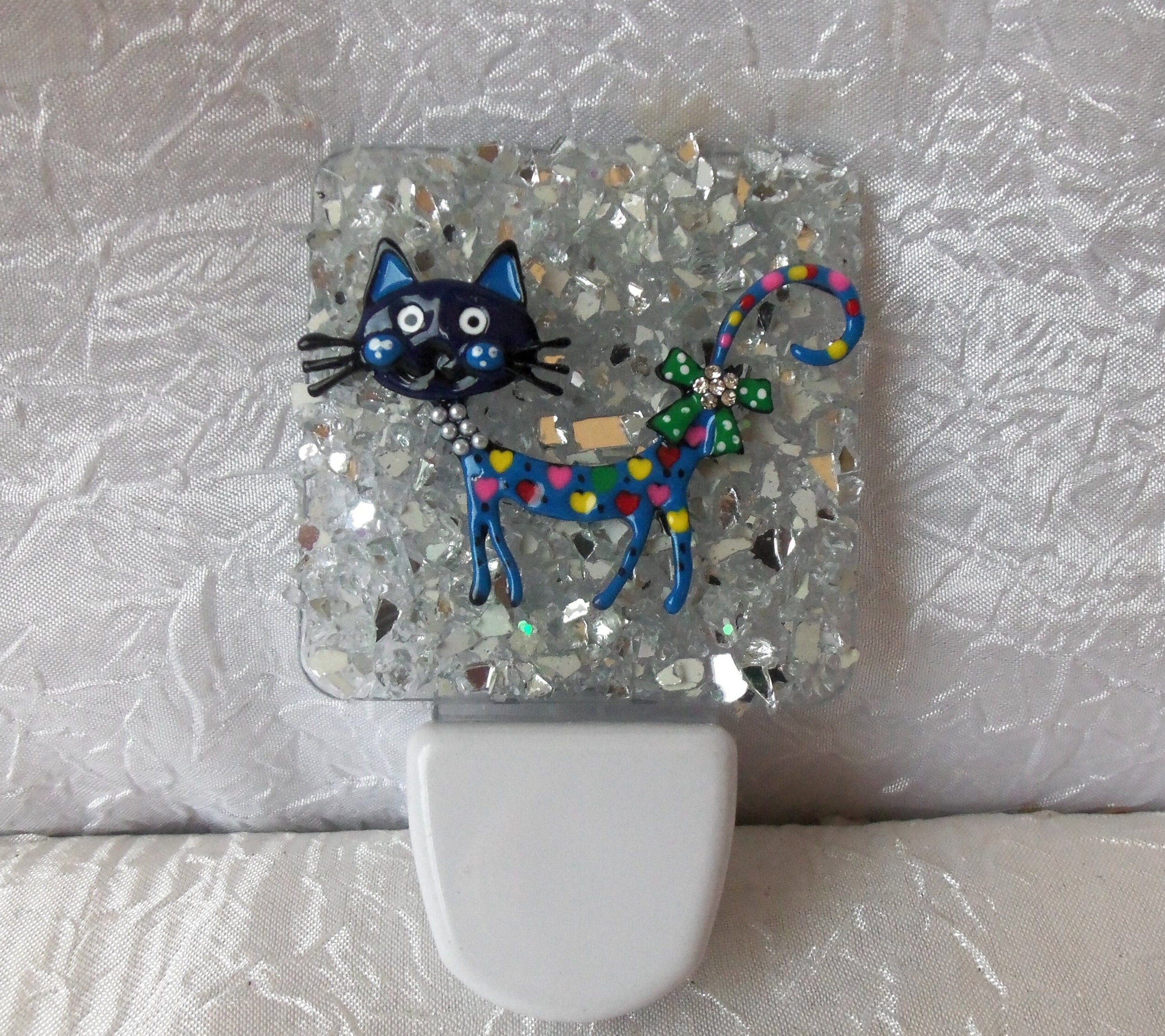 "Luce notturna a LED in acrilico con strass e smalto a forma di gatto, dal tramonto all'alba La...