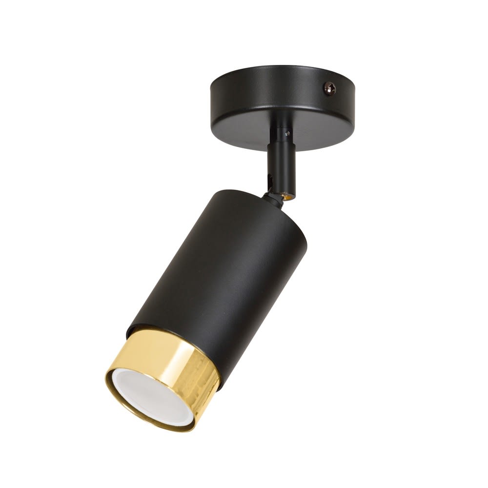 Faretto da soffitto moderno orientabile cilindrico nero e dorato