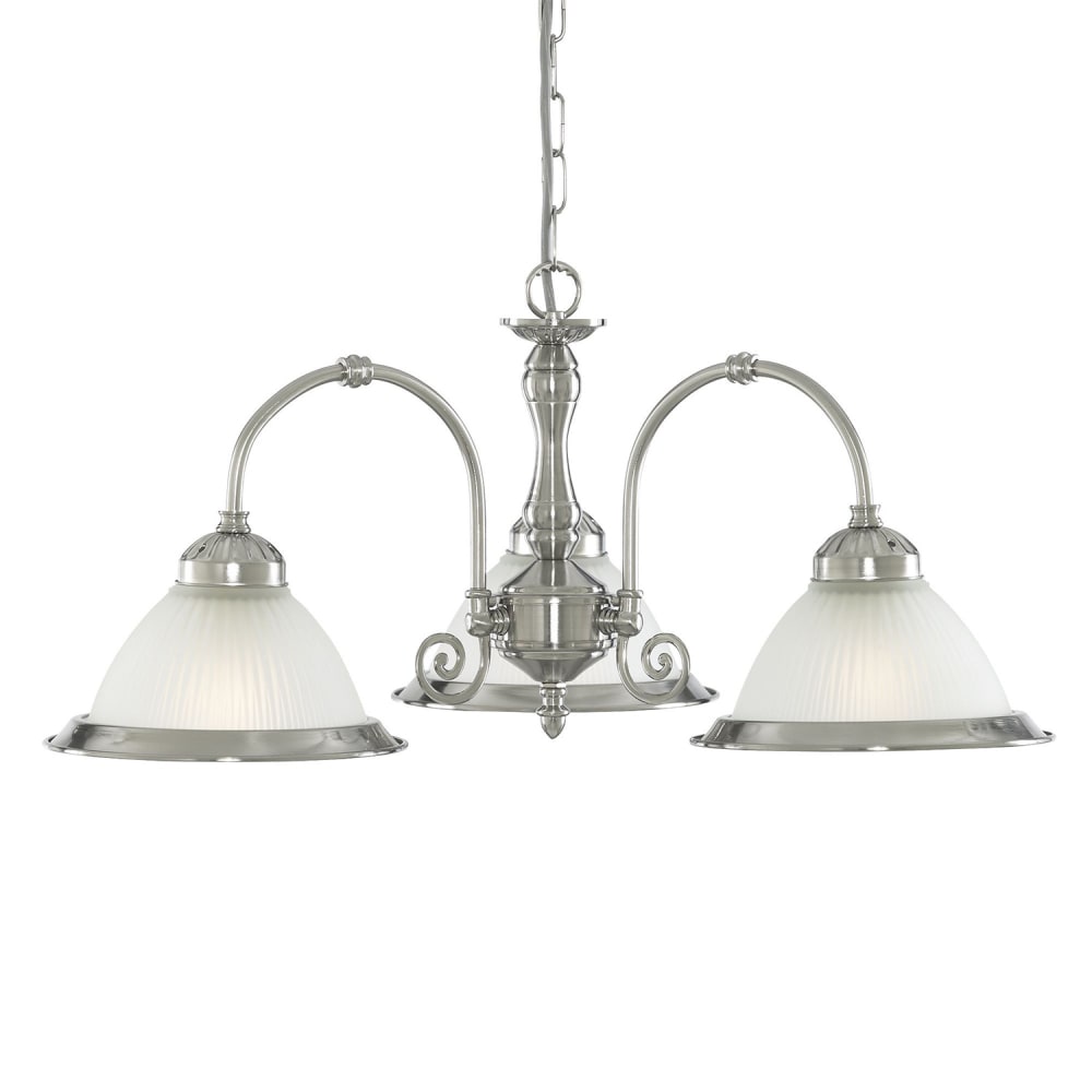 Lampadario American Dinner Acciaio Argento Vetro 3 Luci E27