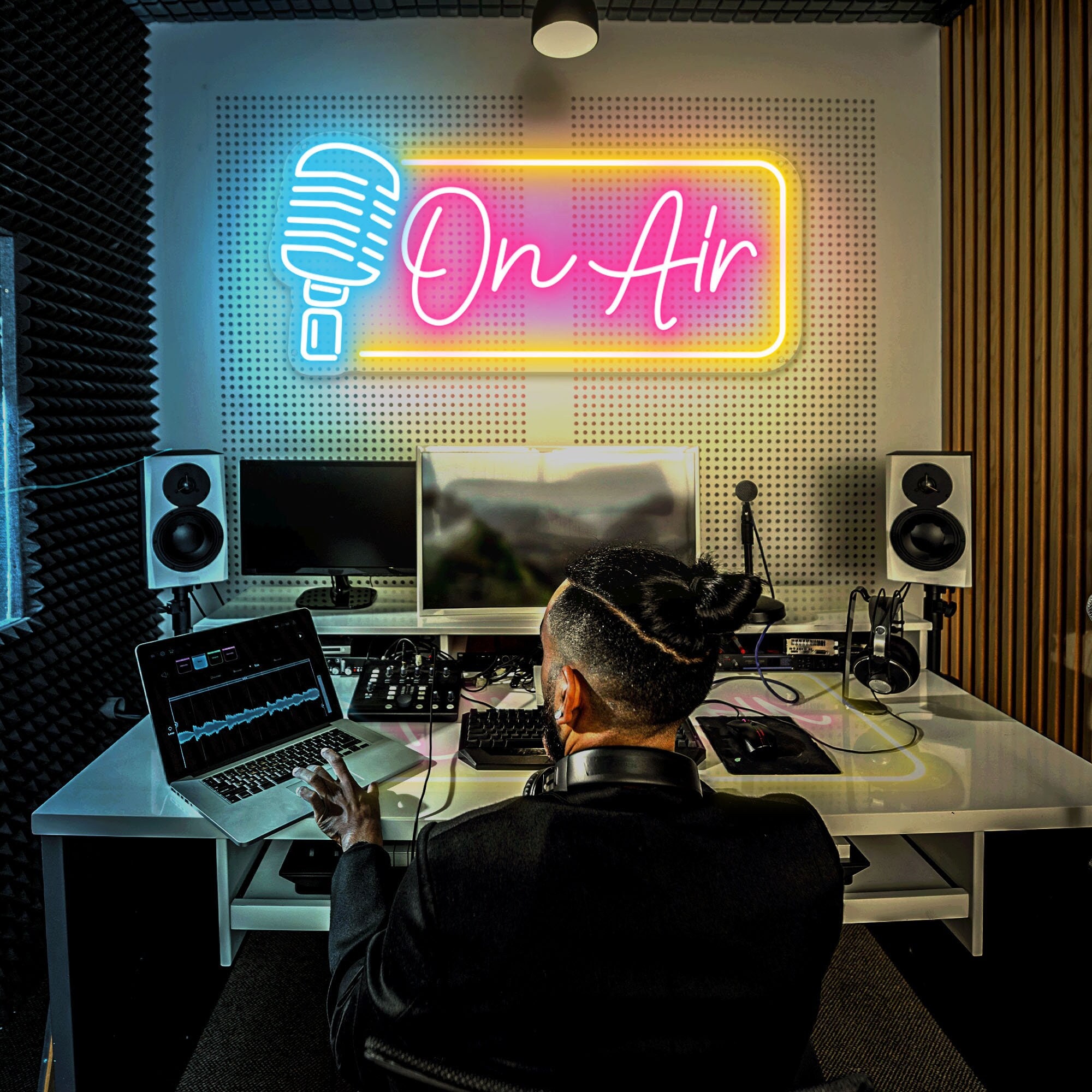 Luce al neon in onda, Insegna al neon in onda, Luce a LED in onda, Segnale in onda LED RGB, Registra...