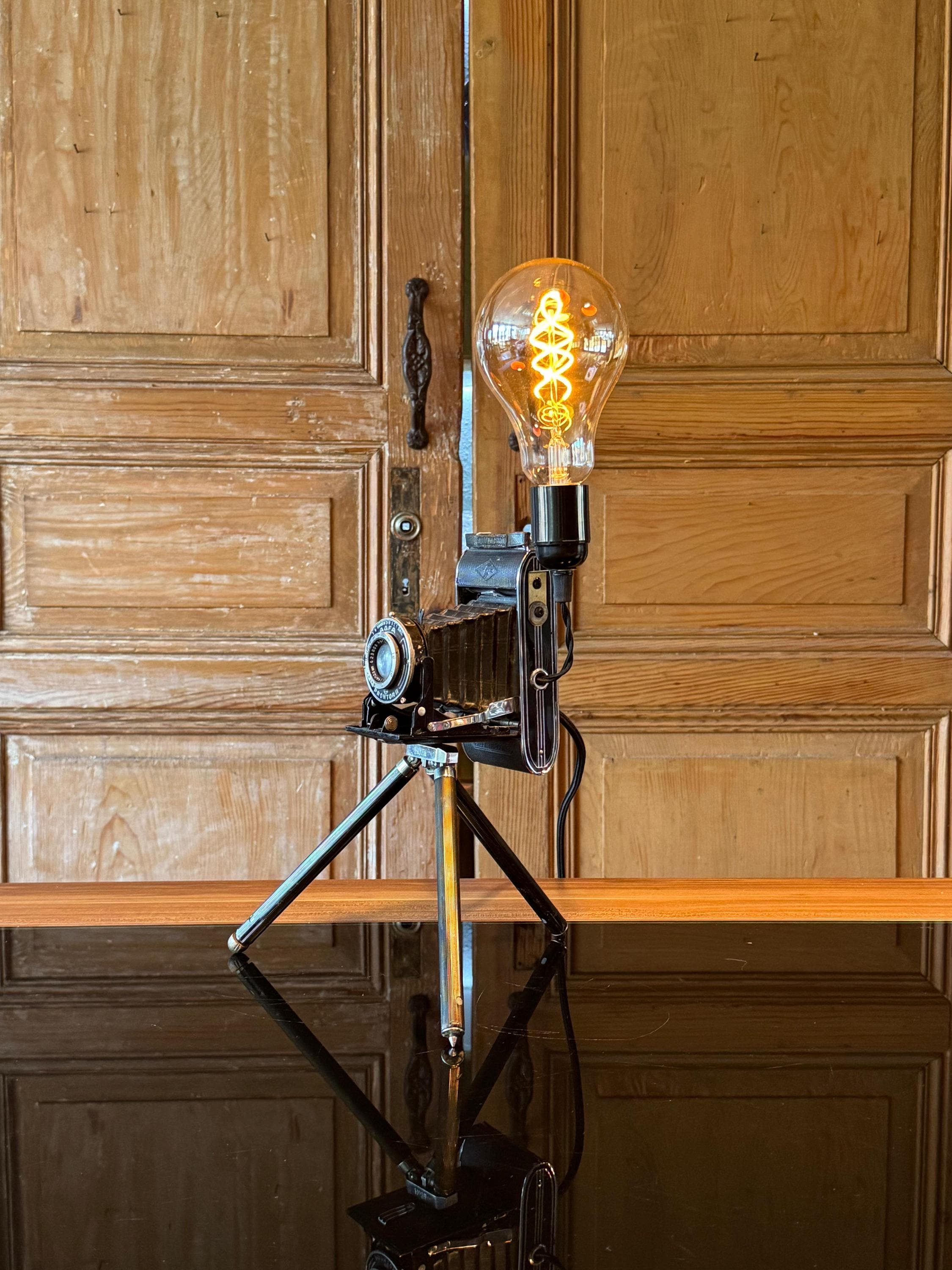 Lampada da tavolo vintage per macchina fotografica, lampada da scri...