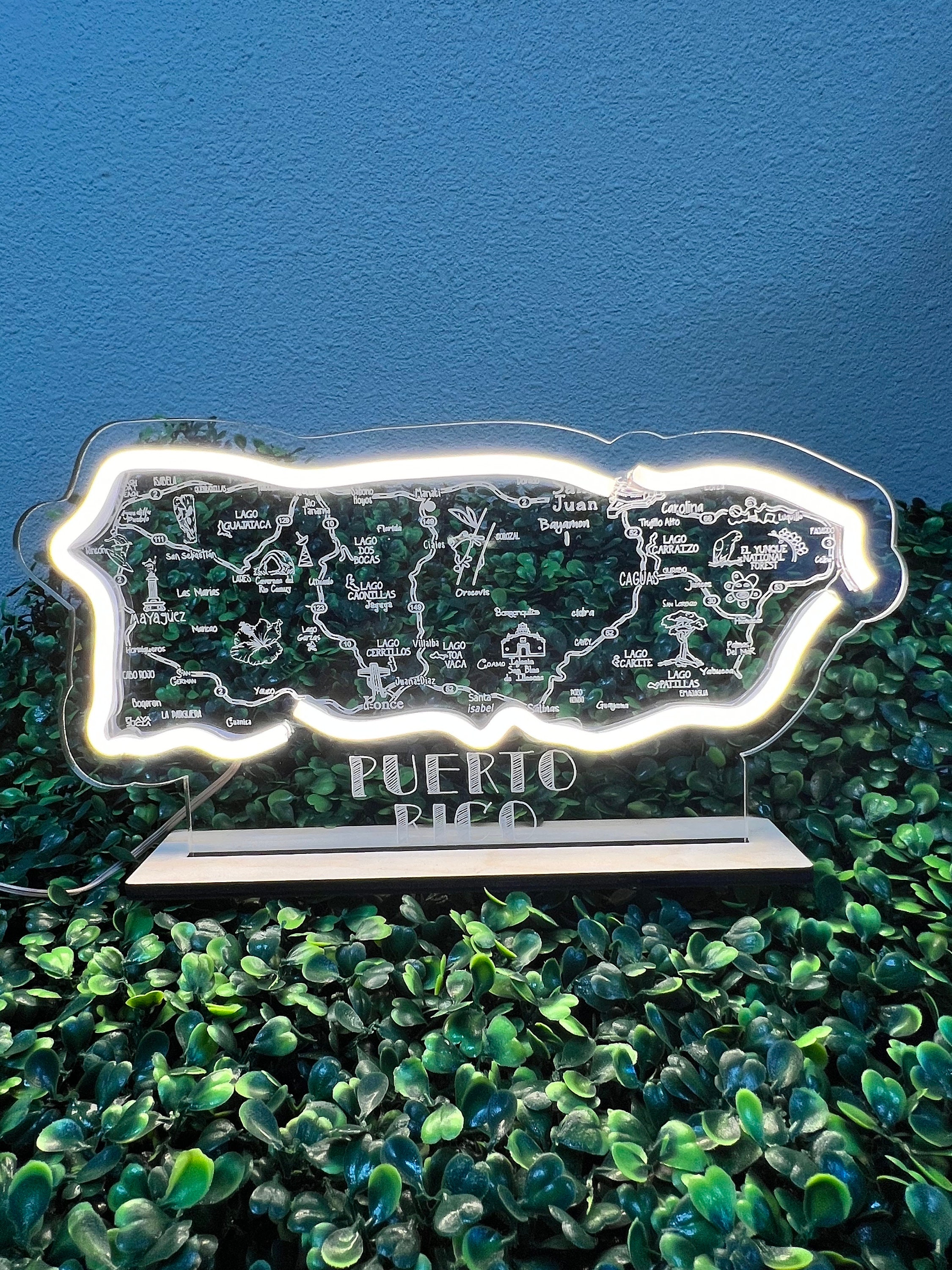 Lampada LED al neon da tavolo con mappa di Porto Rico / Lampara de ...