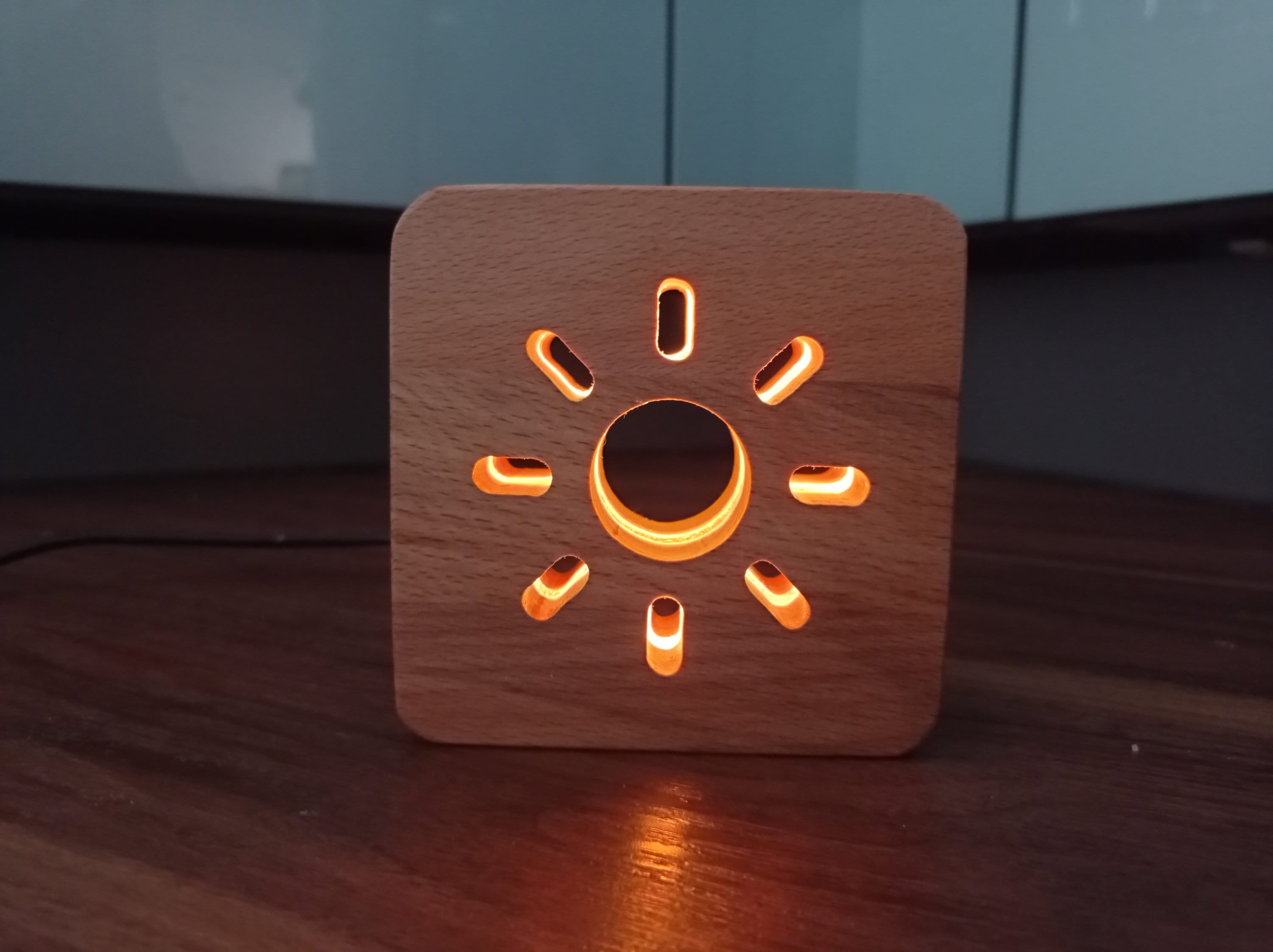 Luce notturna a LED decorativa in legno a forma di sole / Luce da t...