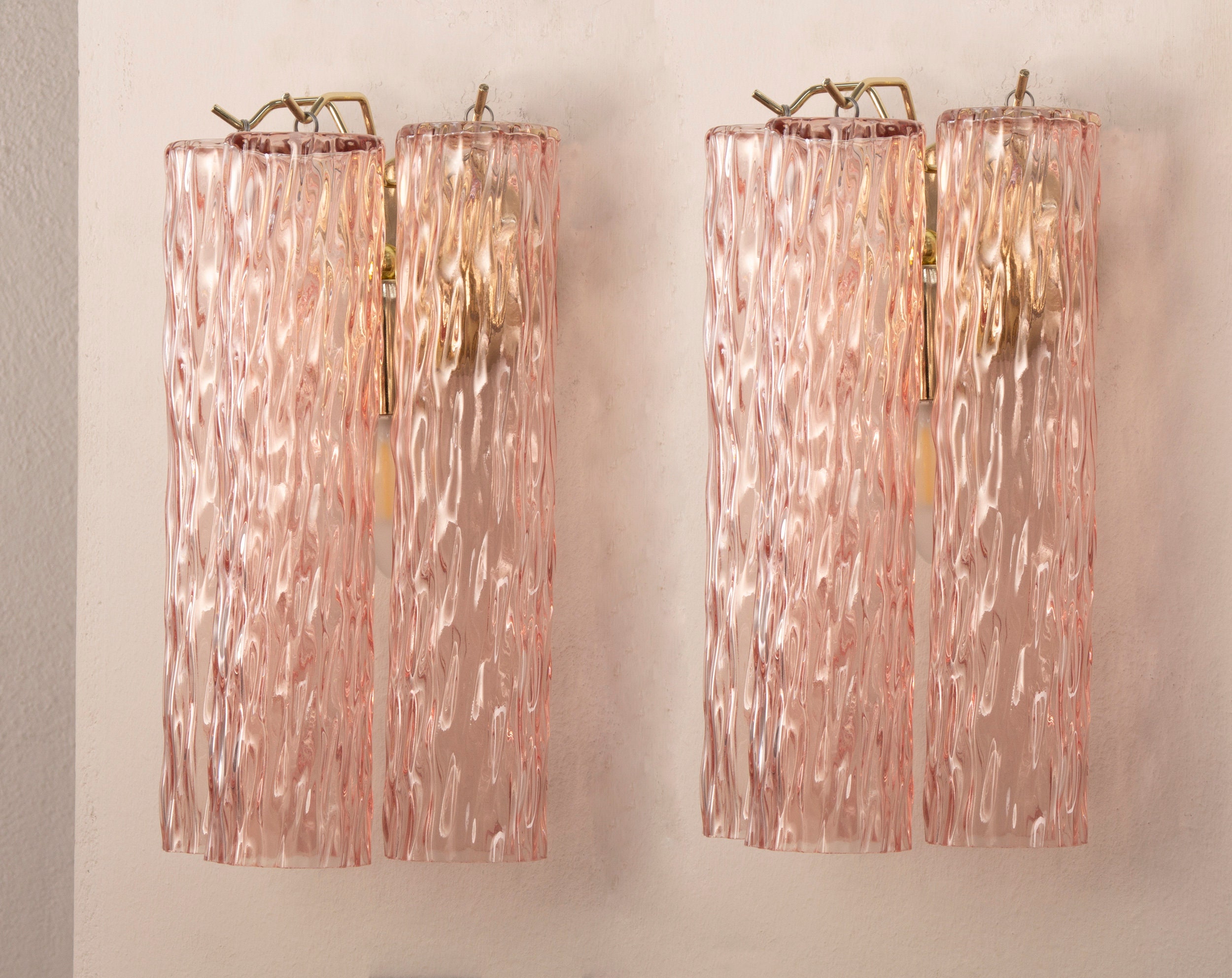 "Set di 2 applique in vetro di Murano colore rosa Made in Italy, lampada da parete in stile vin...