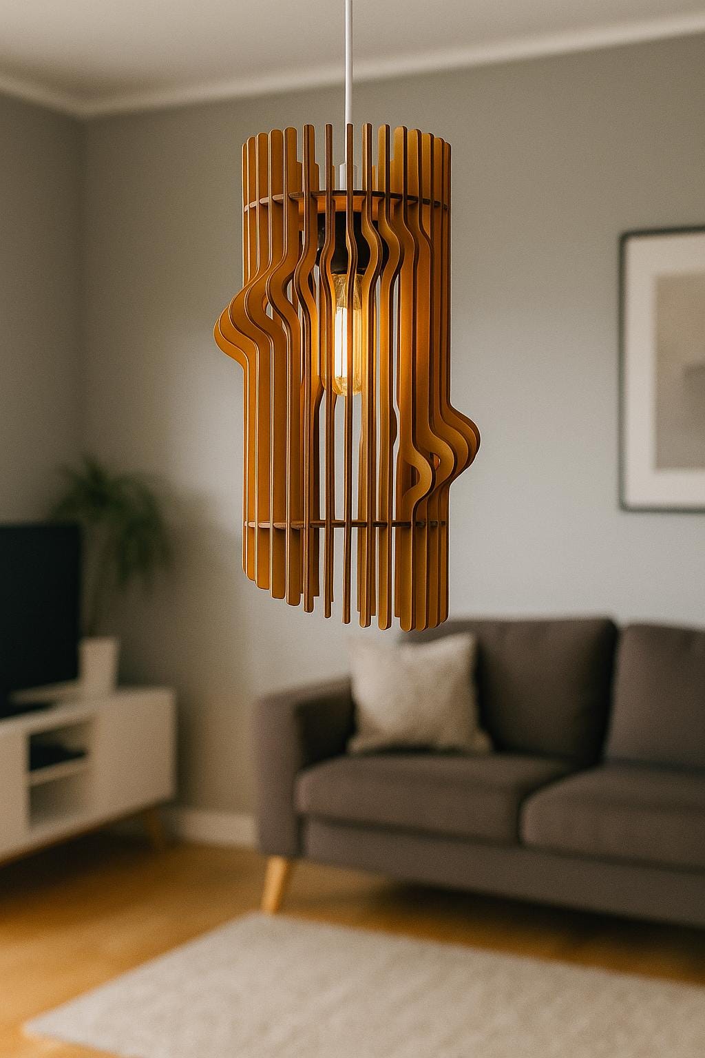 Lampadario in legno, lampada a sospensione in legno, illuminazione ...