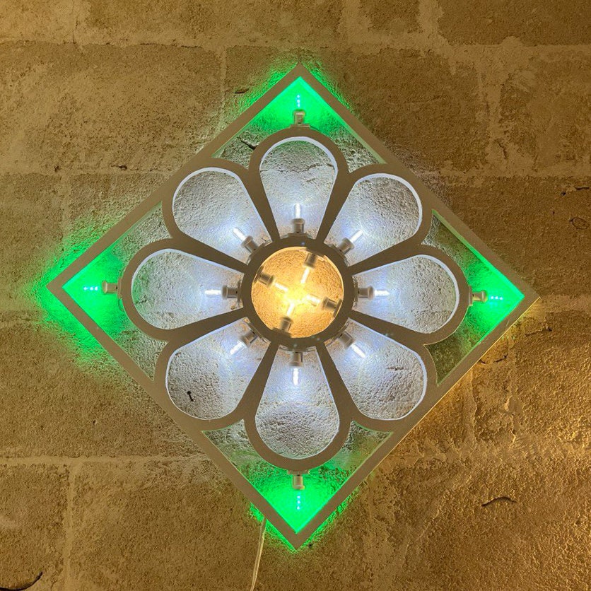 Luminaria Pugliese da arredo in legno con luci colorate. Il telaio, in legno di pioppo, è sta...