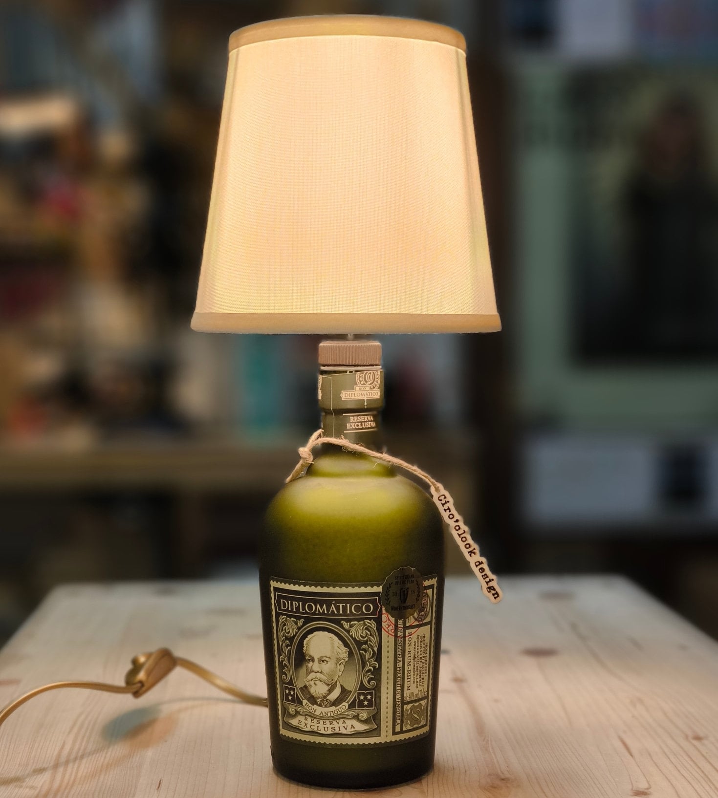 "Come da foto lampada Abat jour realizzata con bottiglia di \"Rum Diplomatico\". Il c...