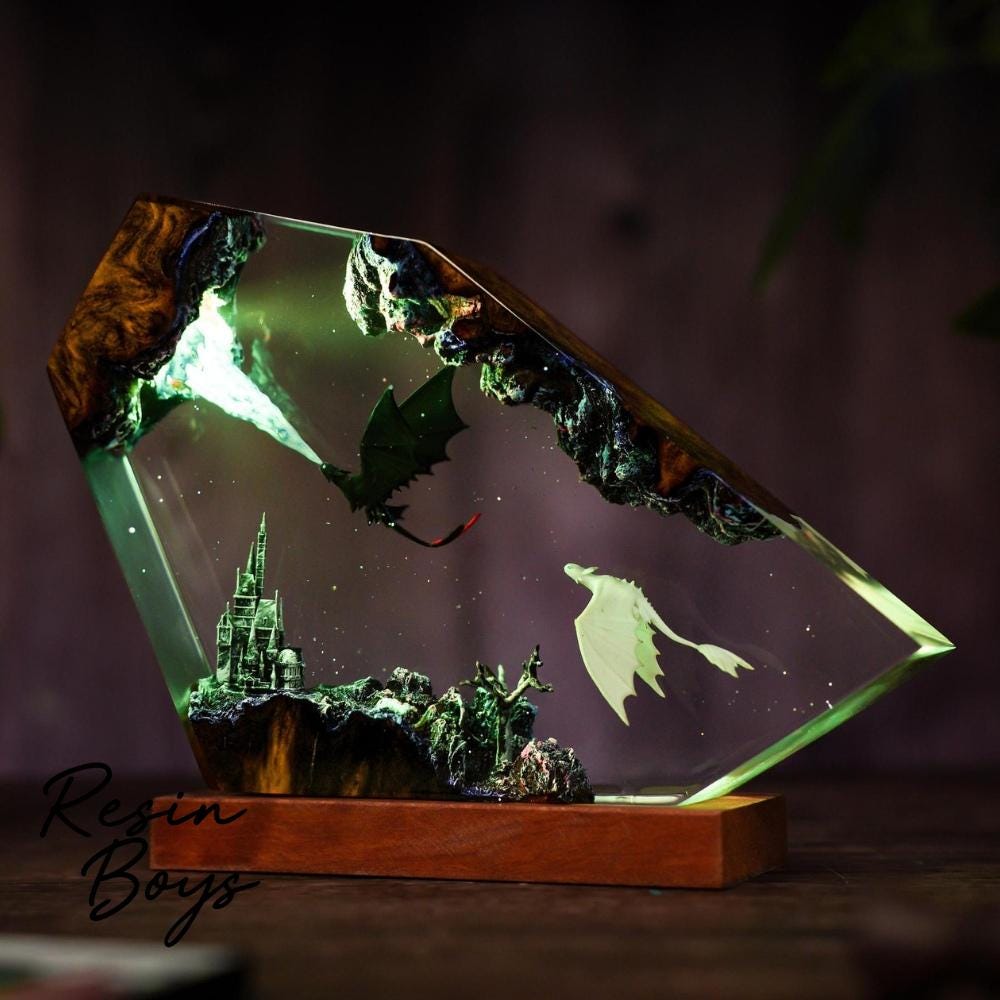 Lampada in resina fatta a mano a forma di drago - Luce notturna Sde...