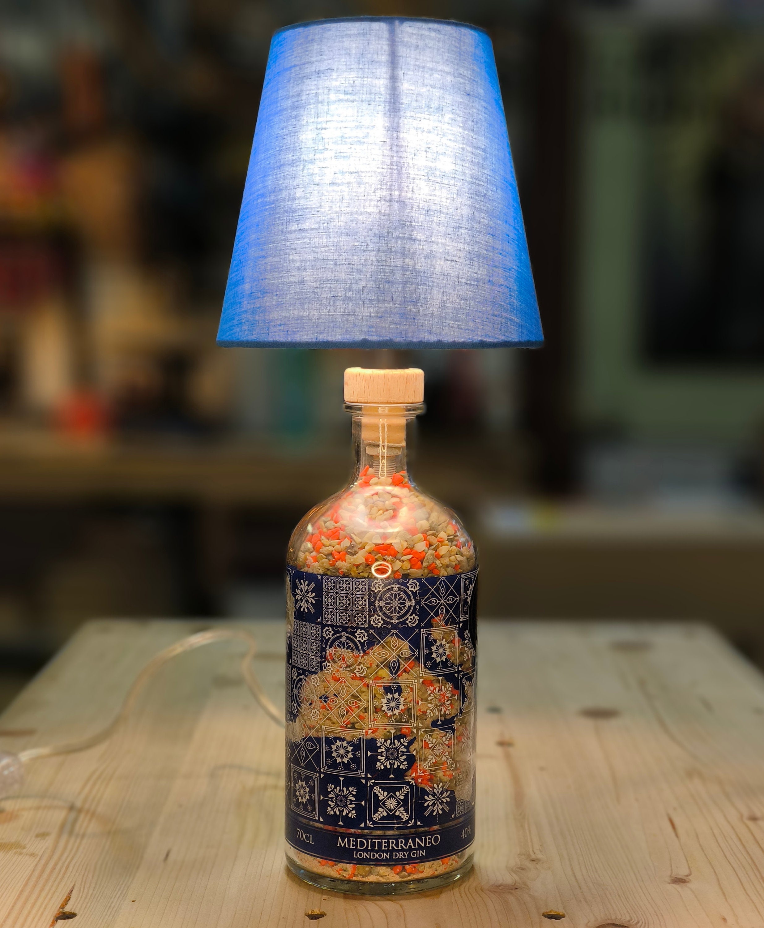 "Come da foto lampada Abat jour realizzata con bottiglia di \"Gin Mediterraneo\". Il ...