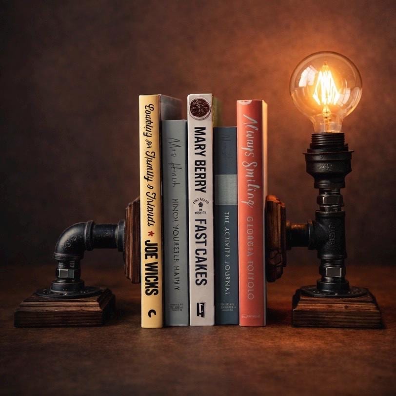Fermalibri con lampada industriale a tubo / Fermalibri steampunk / ...