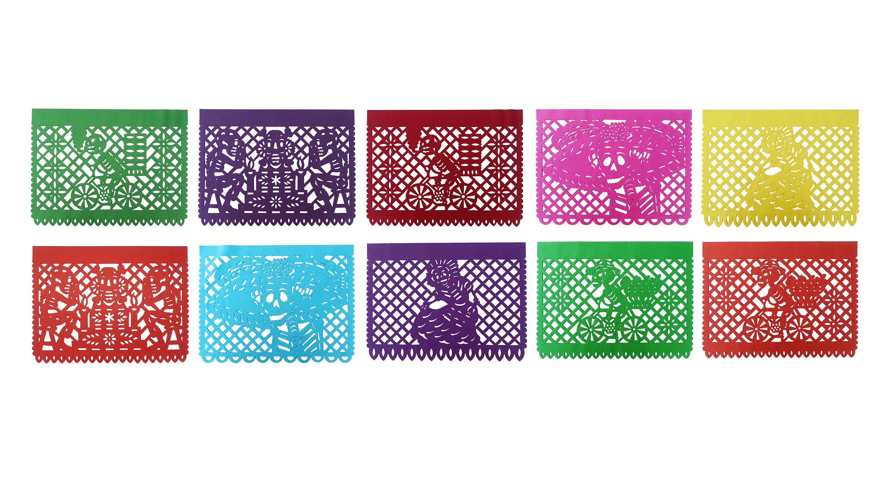 Confezione da 10 fogli di carta picado per il Giorno dei Morti