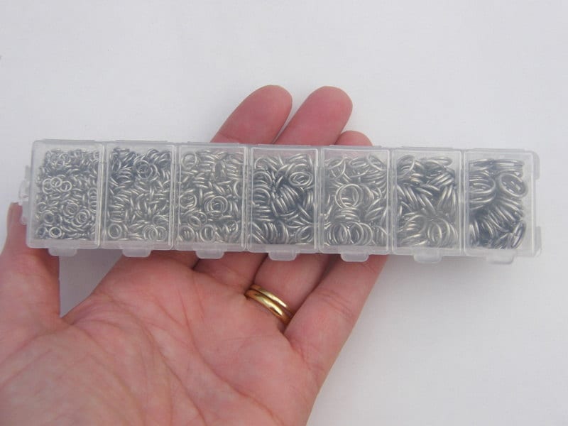 1 scatola di anelli di congiunzione assortiti in acciaio inox da 4 ...