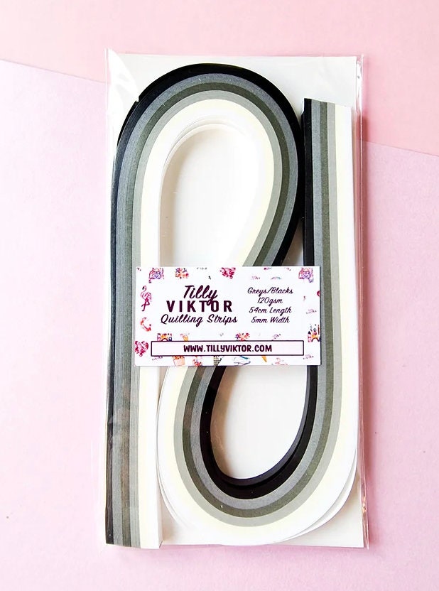 Strisce di quilling TillyViktor nere, grigie e bianche 540 mm Lunghezza 6 sfumature 20 strisce per o...