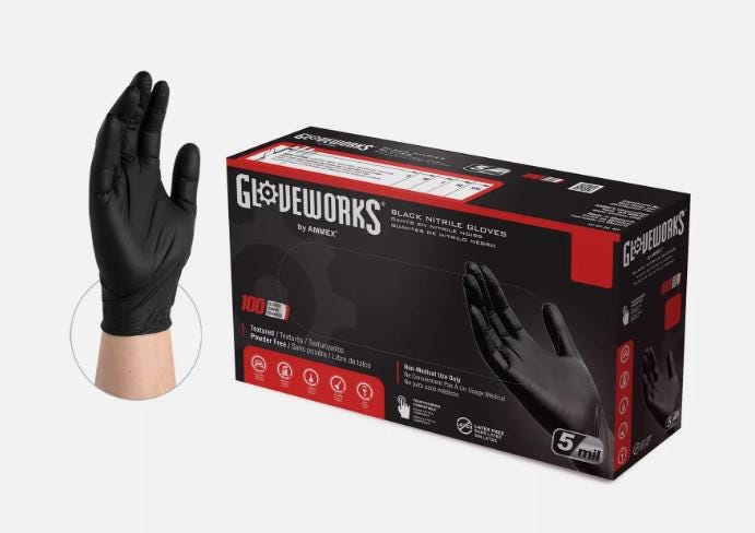 Guanti monouso senza polvere testurizzati GLOVEWORKS in nitrile ner...