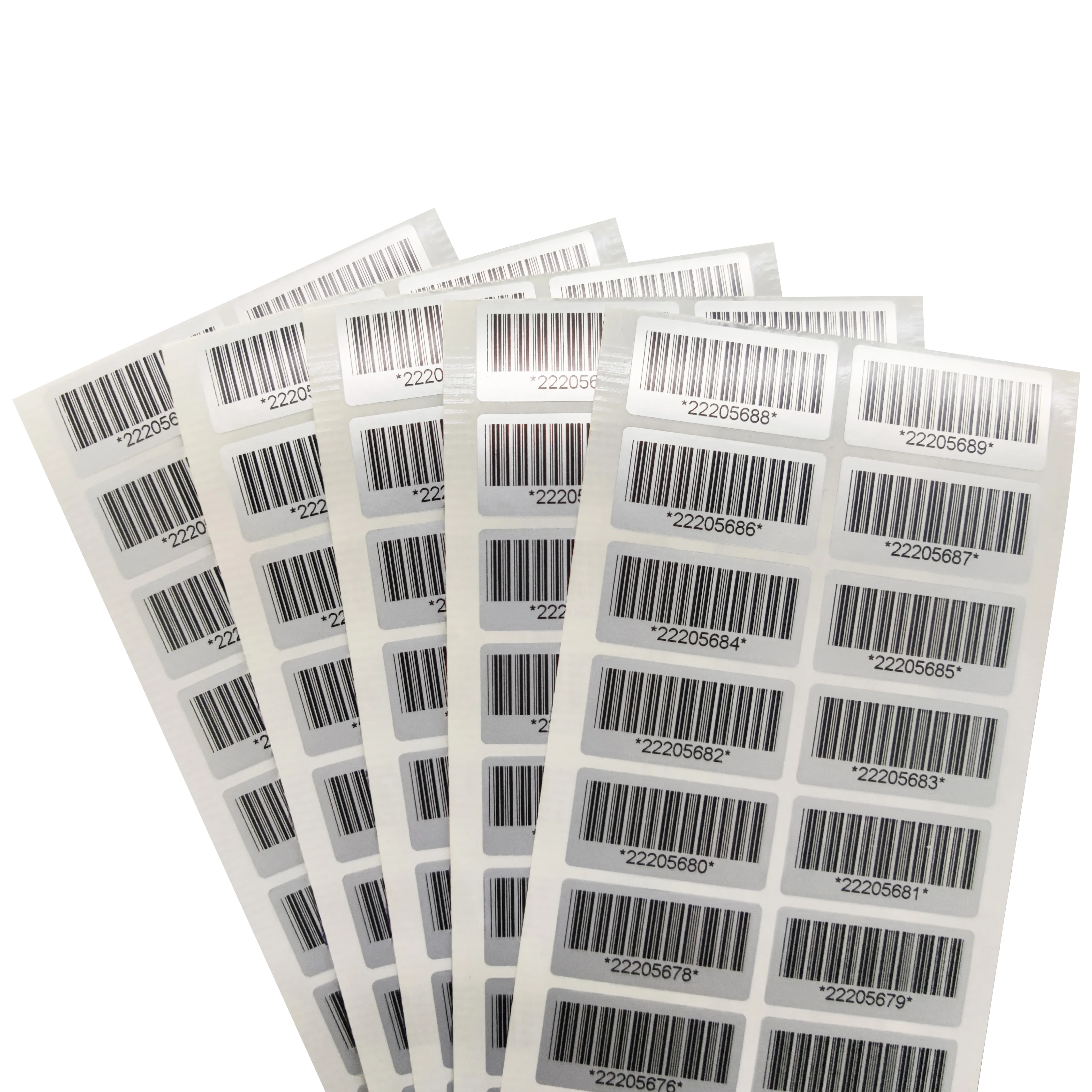 Etichette di sicurezza con codice a barre, adesivi in PET argento o...