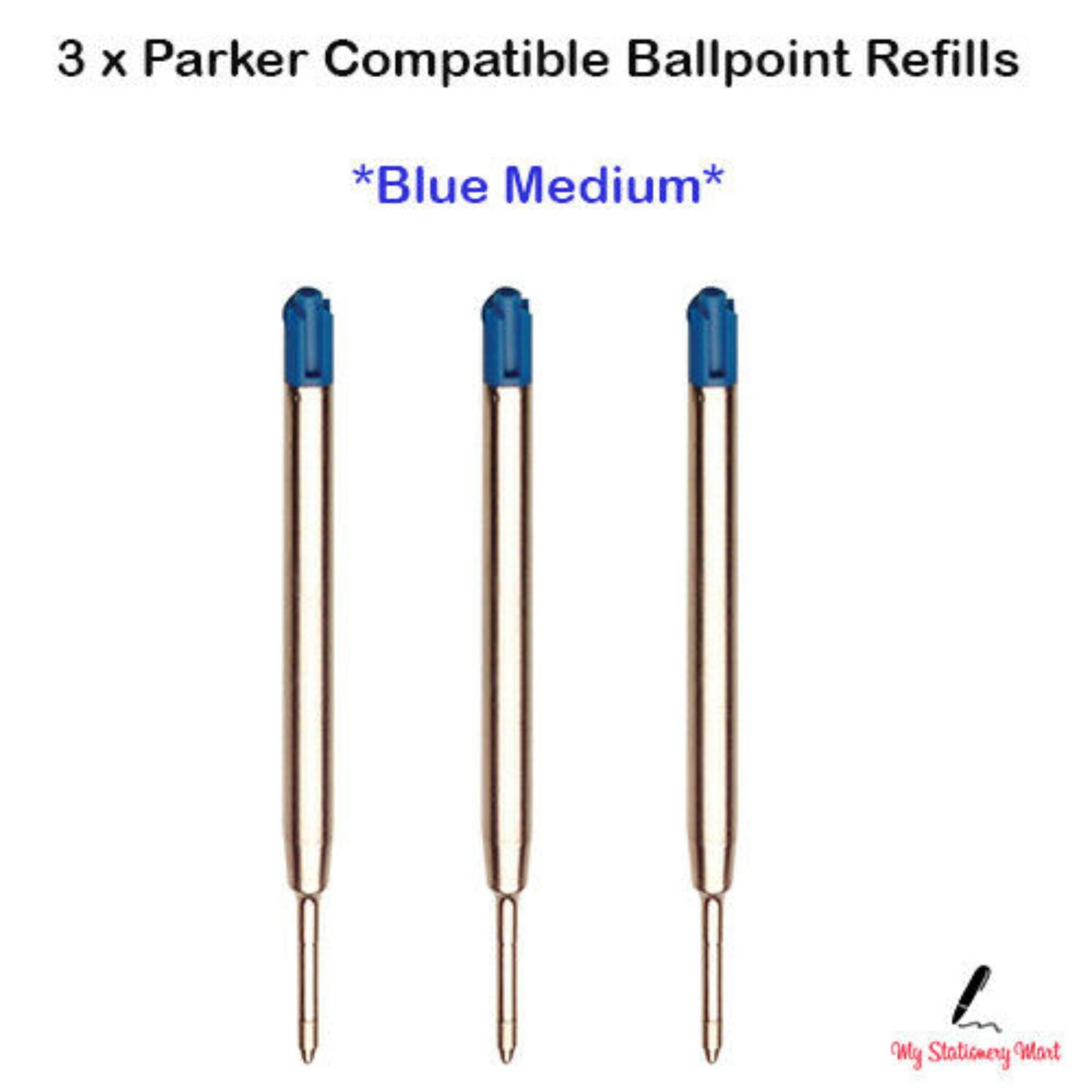 3 x Ricarica a sfera compatibile Parker BLUE Biro Pens Ricarica pen...