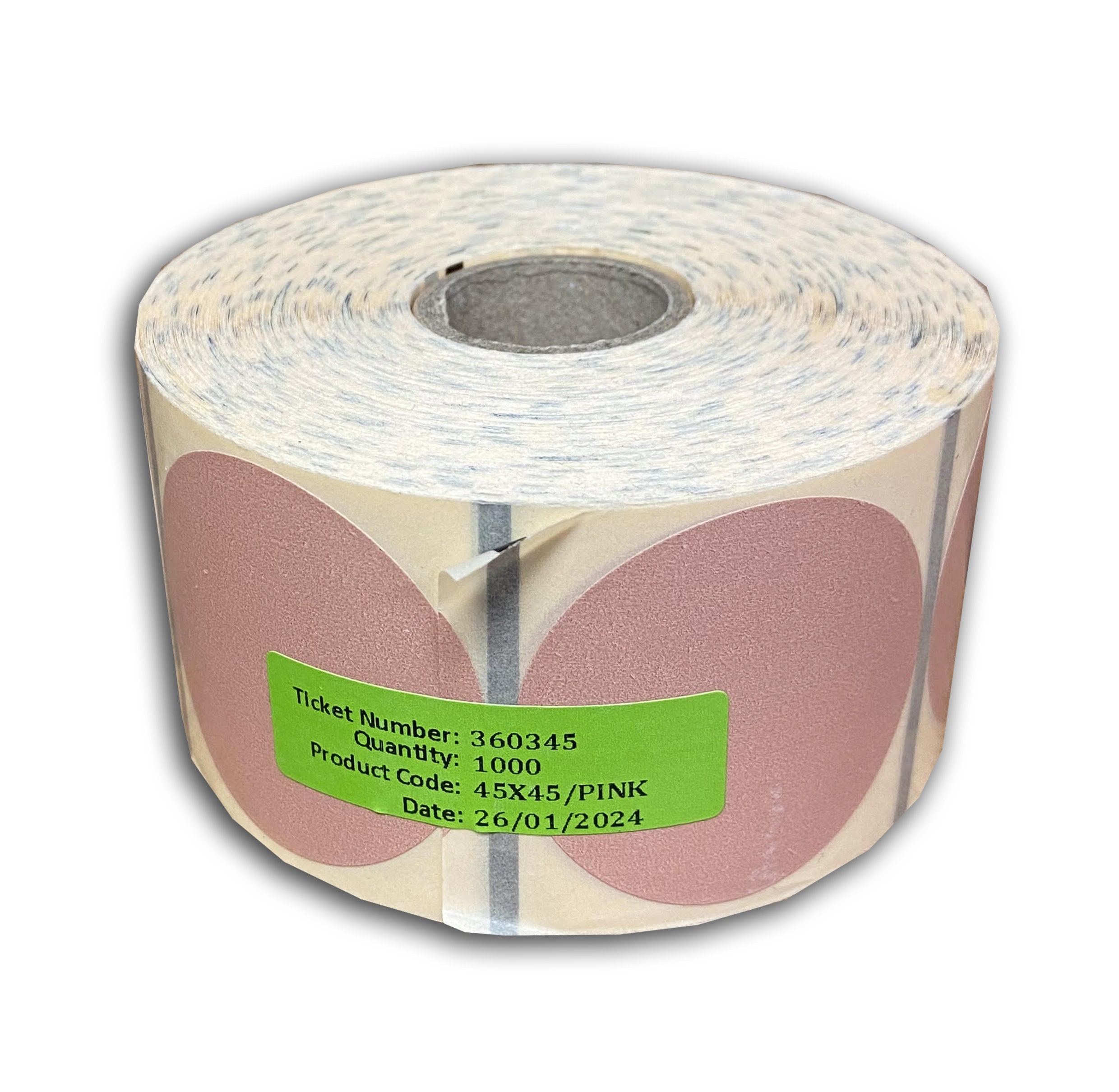 Rotolo da 1.000 etichette adesive per stampante termica rosa cipria rotonde da 45 mm. Perfetti per e...