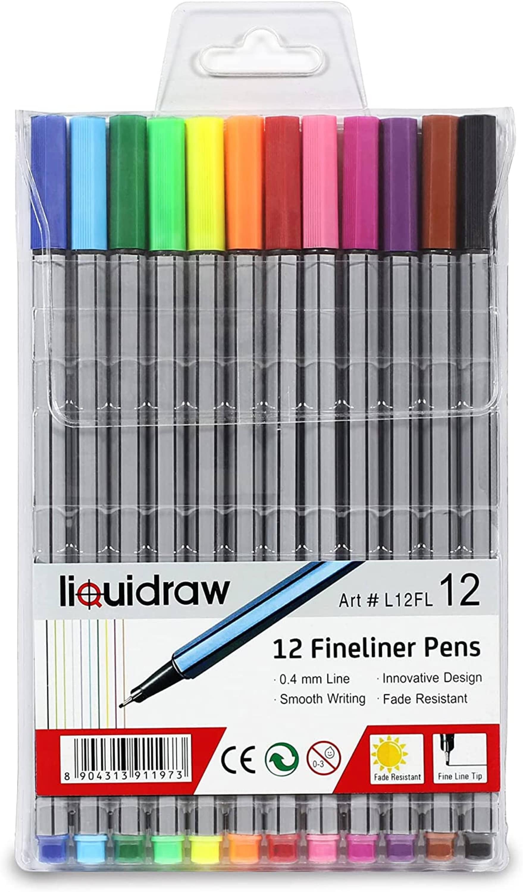 12 Fineliner Colouring Pens Set Fine Point Pens 0.4mm Colori assort...