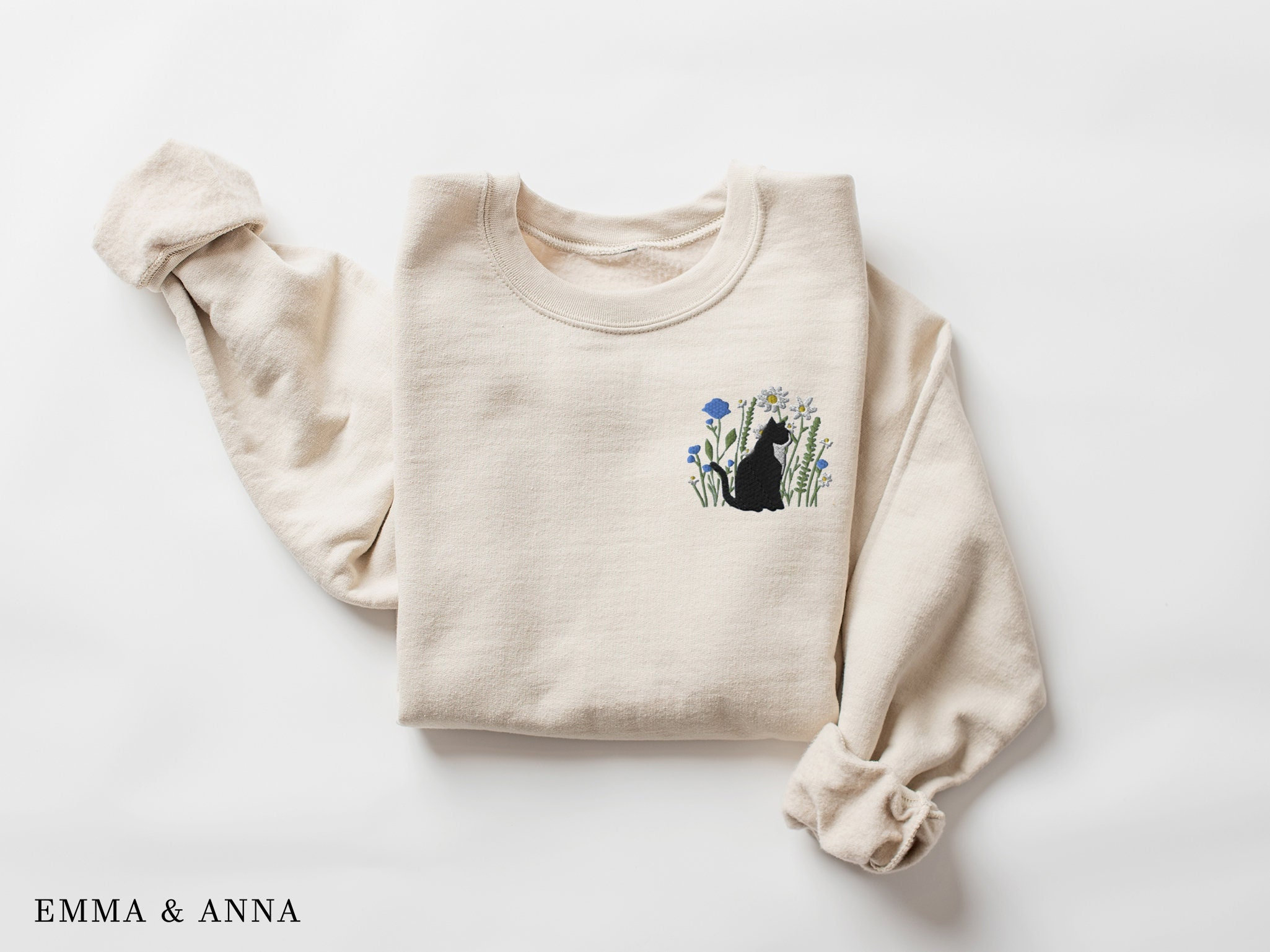 Felpa gatto ricamata, felpa girocollo gatto, maglione gatto, camici...
