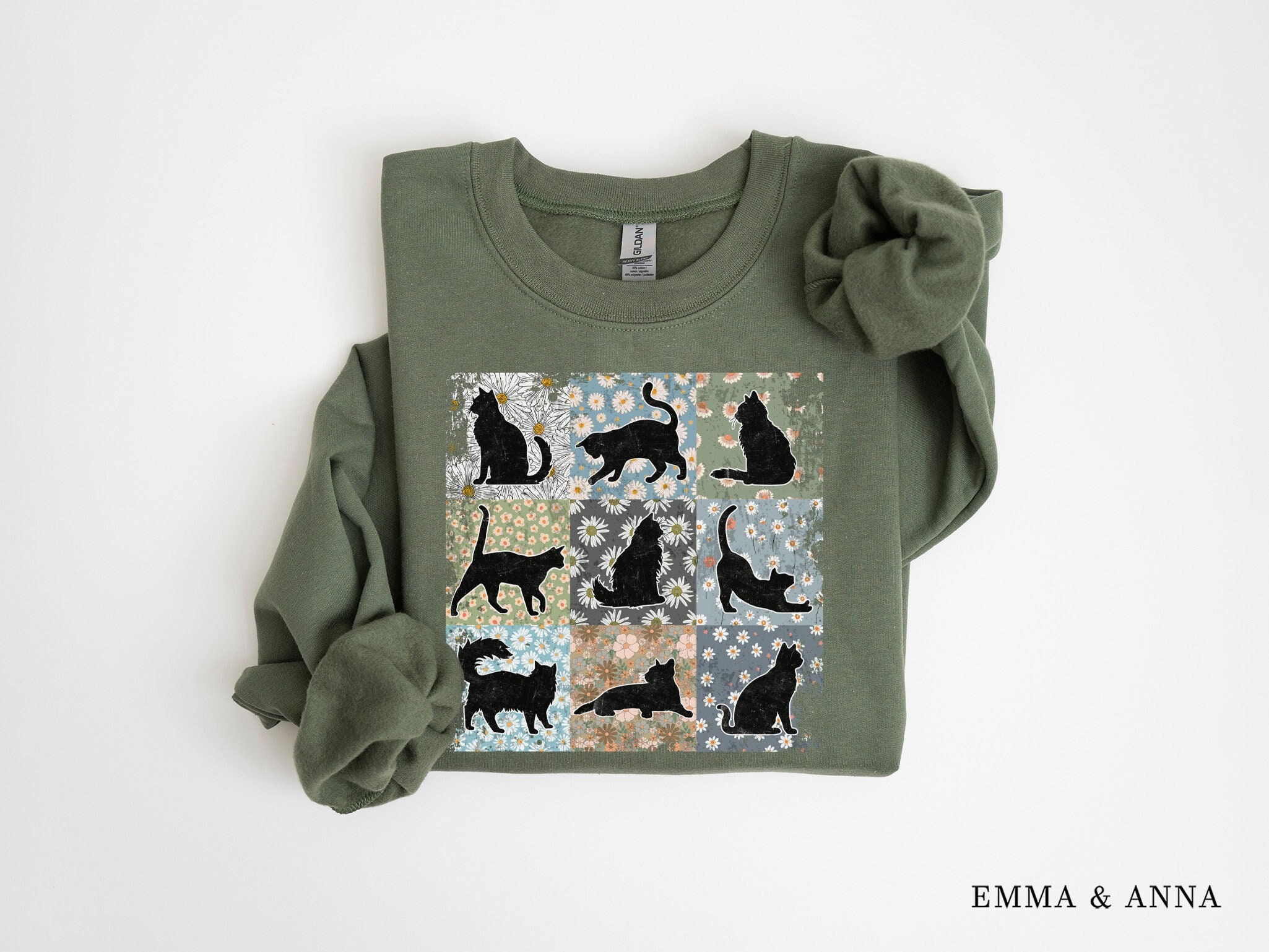 Felpa floreale con gatto nero *Dettagli del prodotto -Stampato con inchiostro - Felpa unisex - Proge...