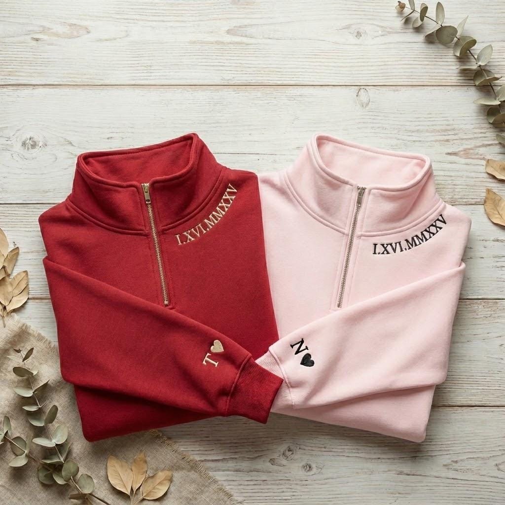Felpa ricamata personalizzata per l'anniversario, iniziale del nume...