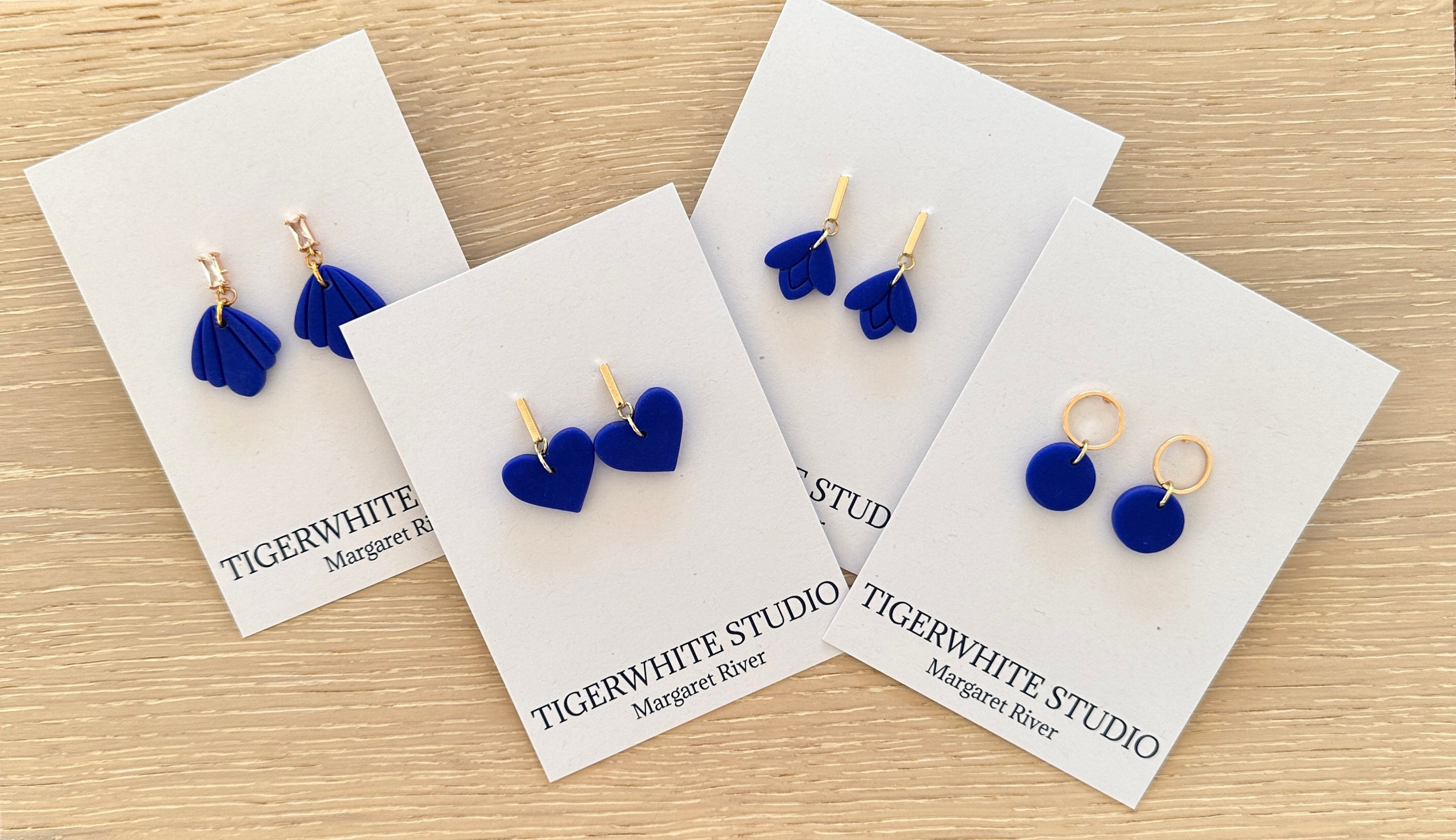 Pendenti in pasta polimerica blu cobalto e oro 18k fatti a mano, pe...
