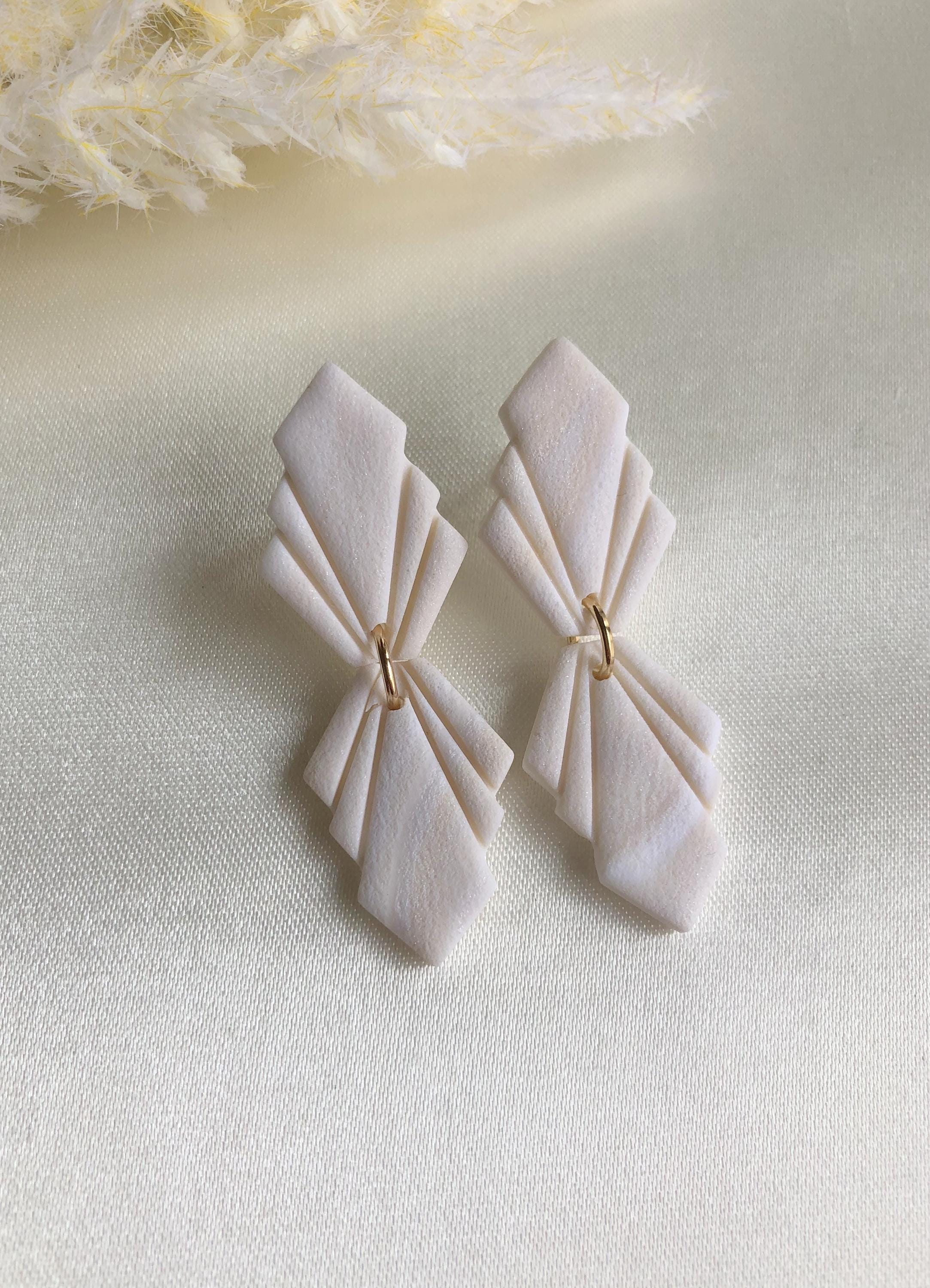 Orecchini statement in pasta polimerica in bianco CROWN Orecchini pendenti in pasta polimerica bianc...