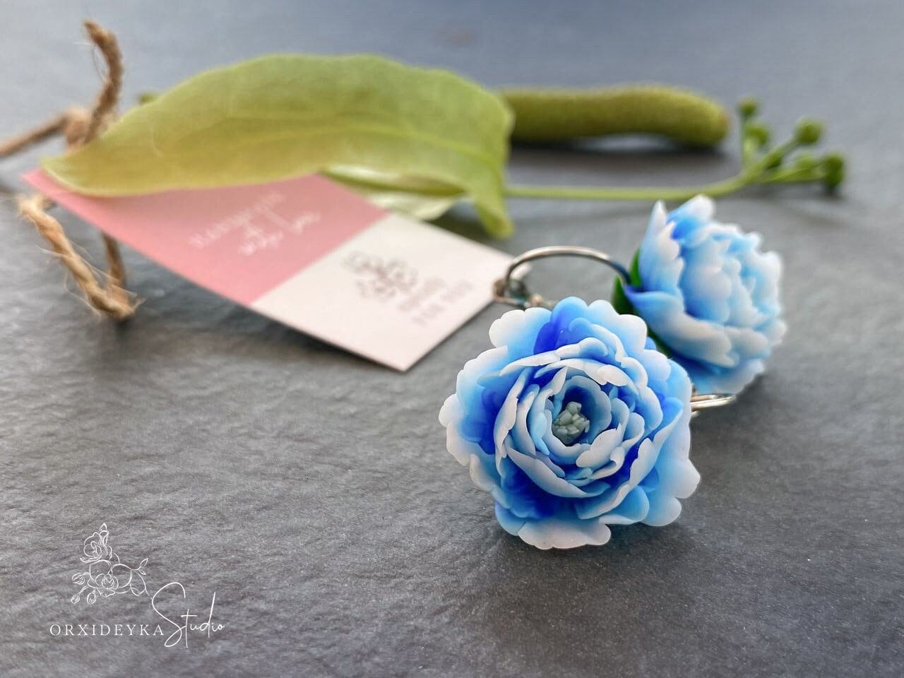 Esclusivi orecchini fatti a mano con meravigliose peonie blu. * Altri gioielli come questo? Segui qu...