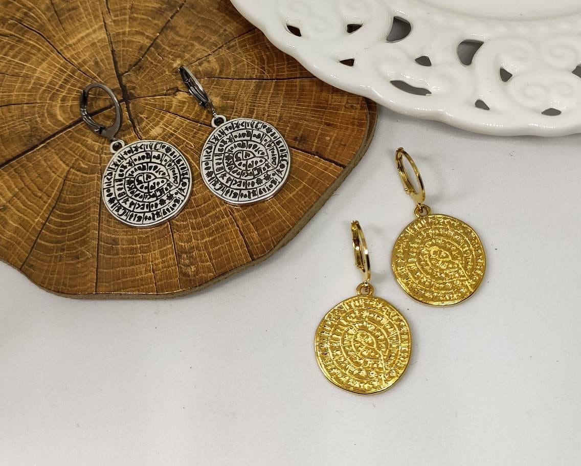Orecchini disco greco Phaistos di Ilios, disco Phaistos, disco Phai...