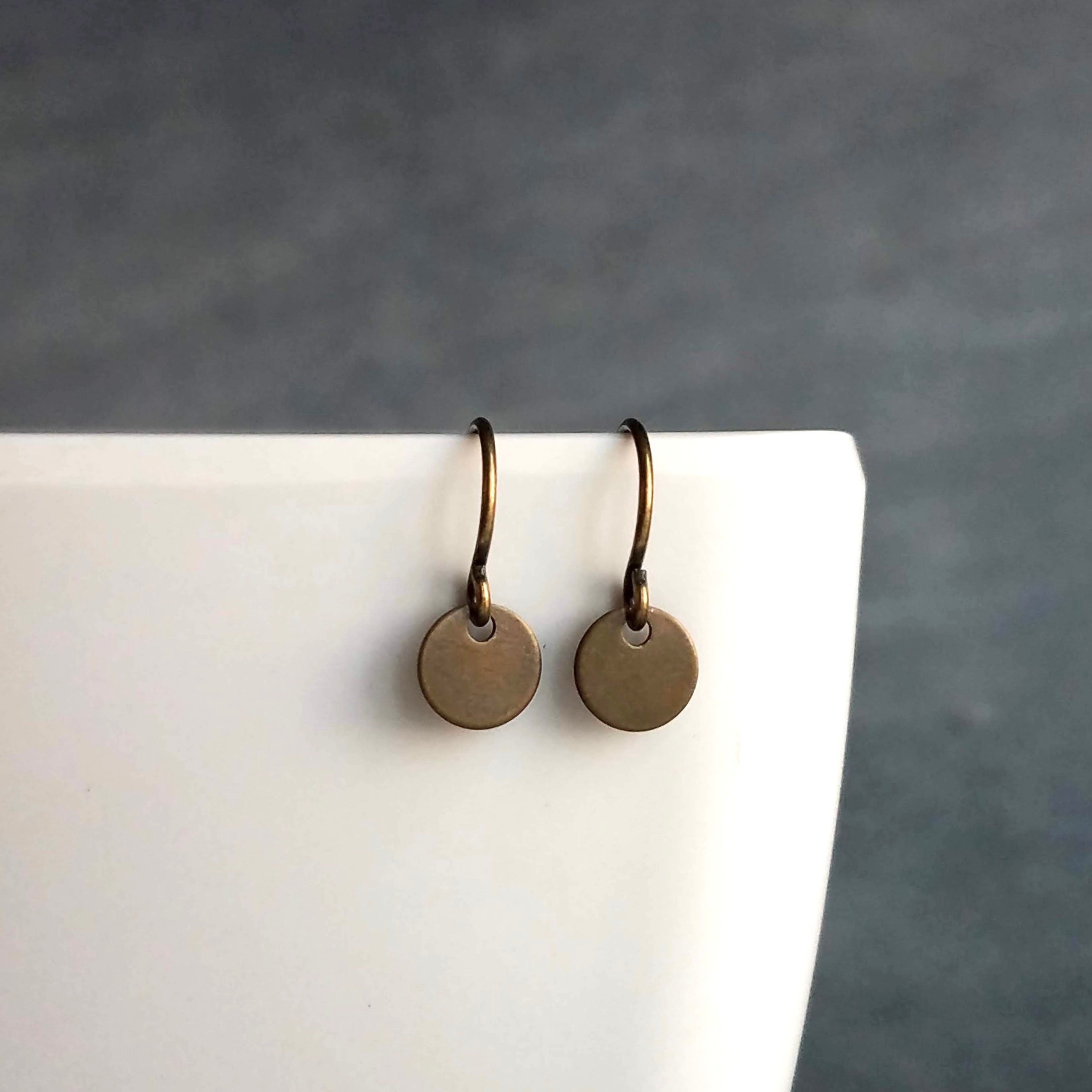 Orecchini a disco piccolo, orecchini a disco in bronzo, orecchini i...