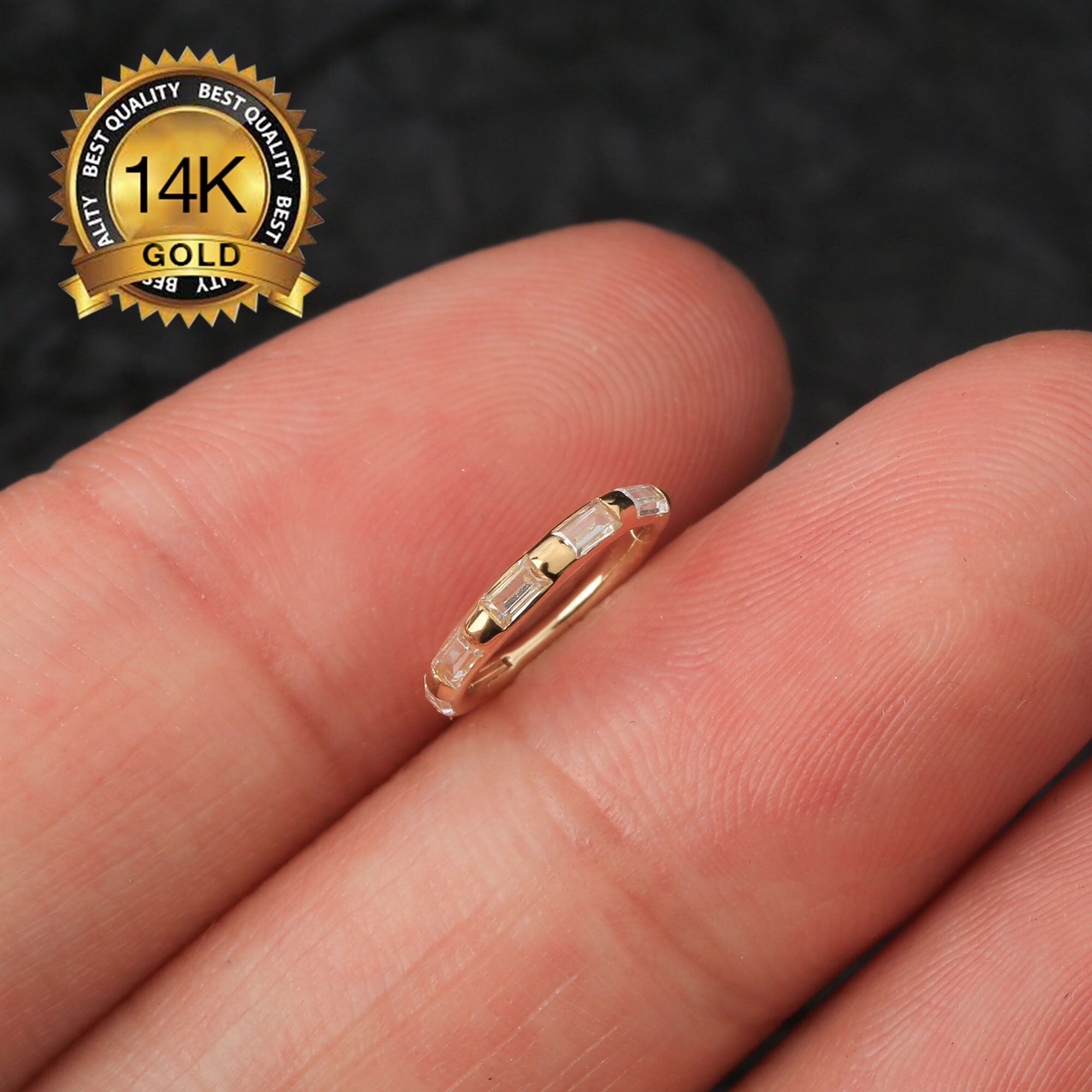 Cerchio per cartilagine CZ Baguette in oro massiccio 14K/Cerchio re...