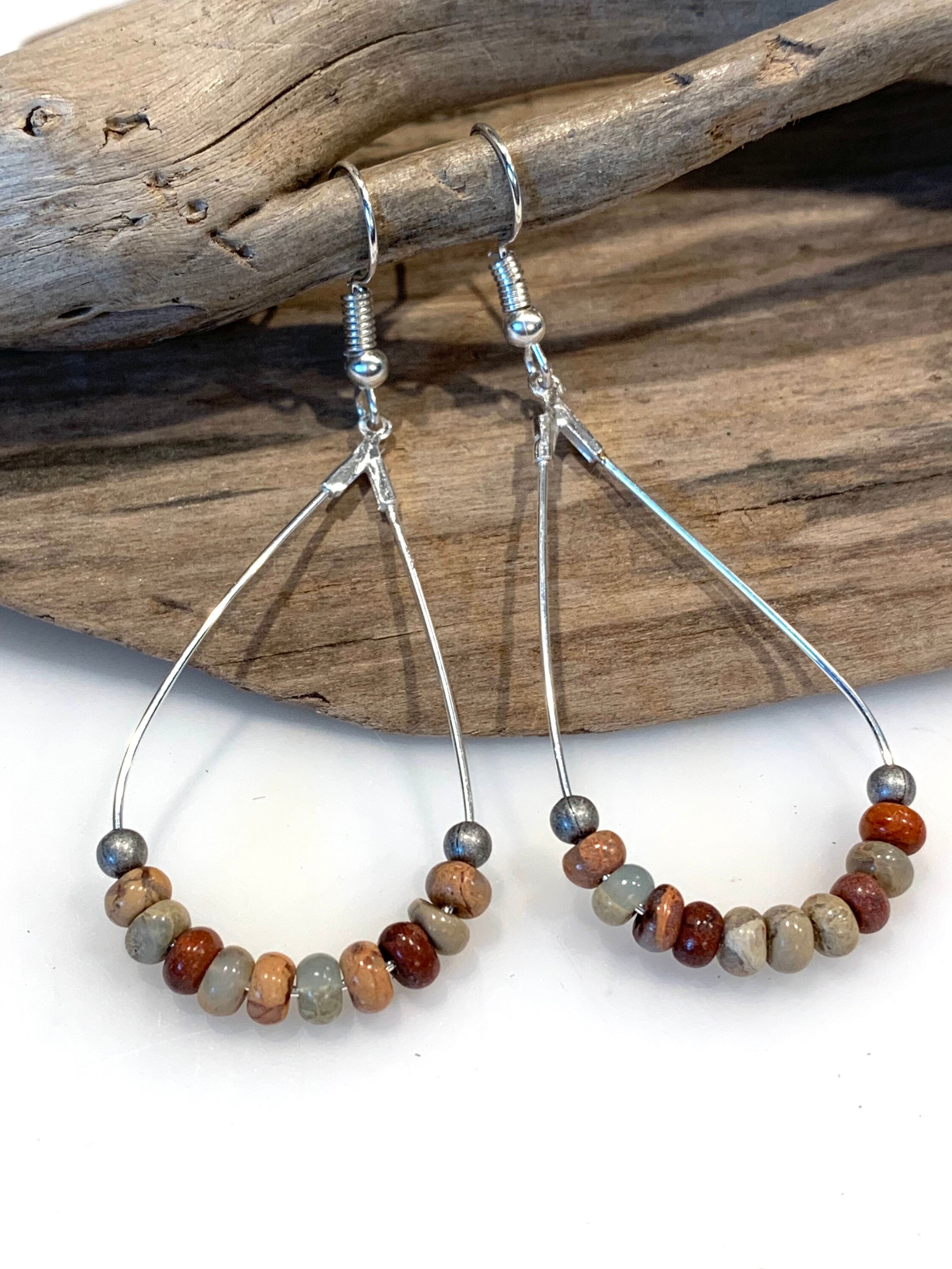 Orecchini a cerchio, orecchini a goccia in stile boho, pietre ronde...