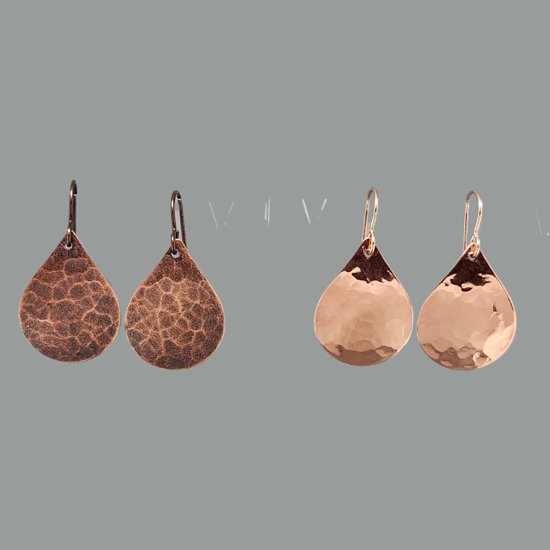 "Orecchini in rame martellato, orecchini con texture in rame martellato, orecchini a goccia, or...