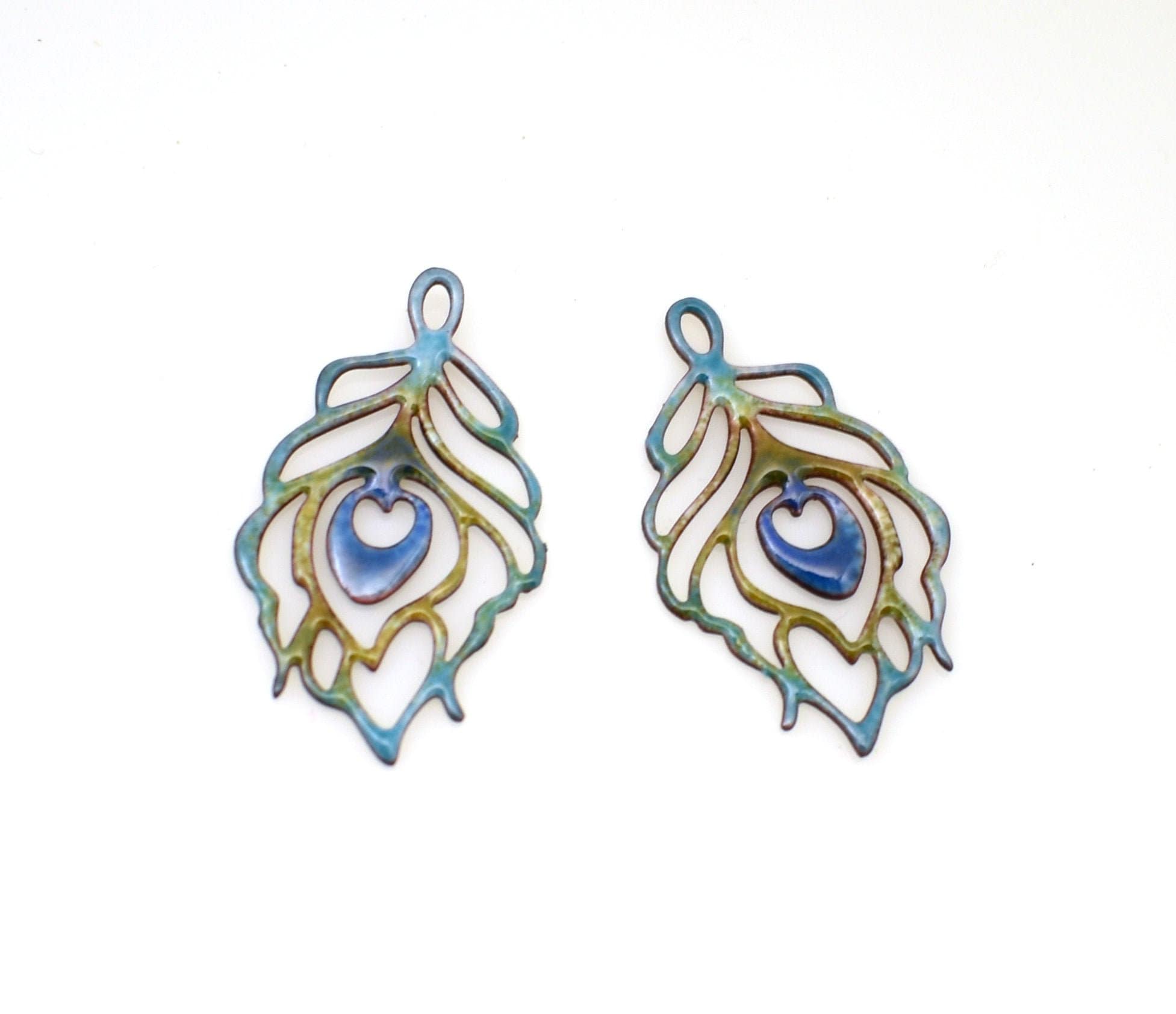 Rame smaltato, piuma di pavone Creazione di gioielli in rame smalta...