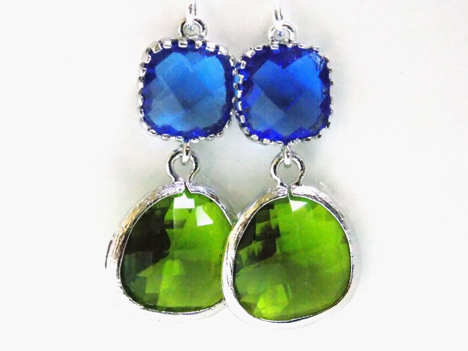 Splendidi orecchini in argento vetro in blu cobalto e colore verde mela! Queste bellissime perle sfa...