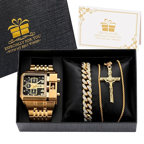 3pcs/set Orologio da Uomo in Acciaio Inossidabile al Quarzo con Cal...