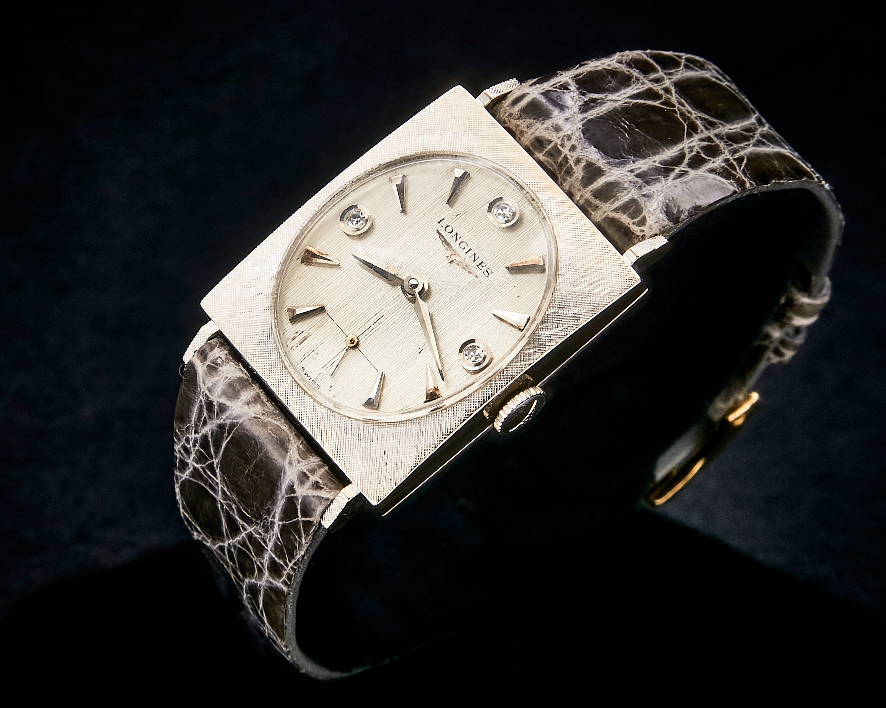 Orologio da donna Longines vintage in oro bianco 14k e diamanti, ri...