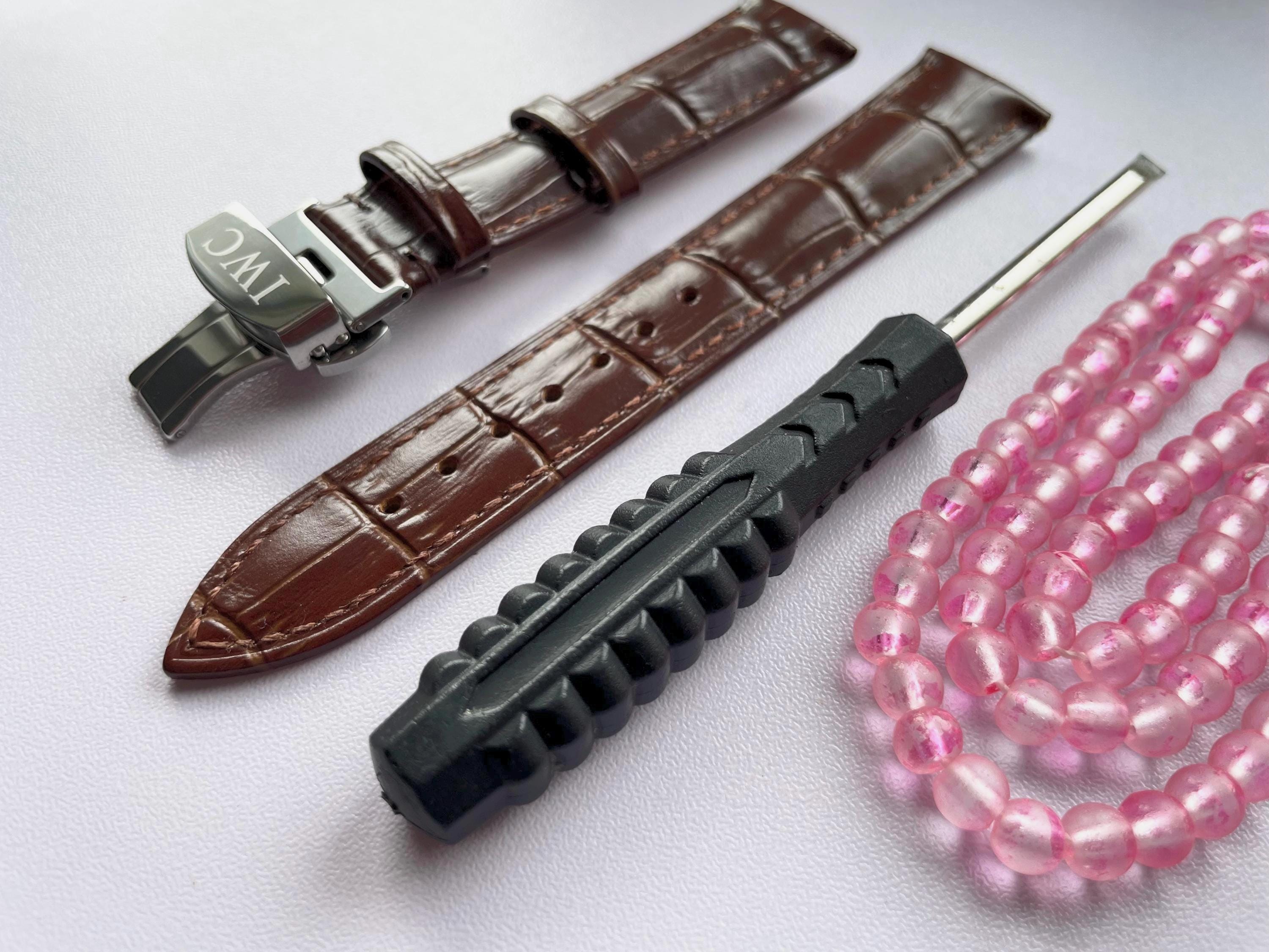 Cinturino per orologio IWC in pelle marrone da 18/19/20 mm con chiusura deployante con pulsante in a...