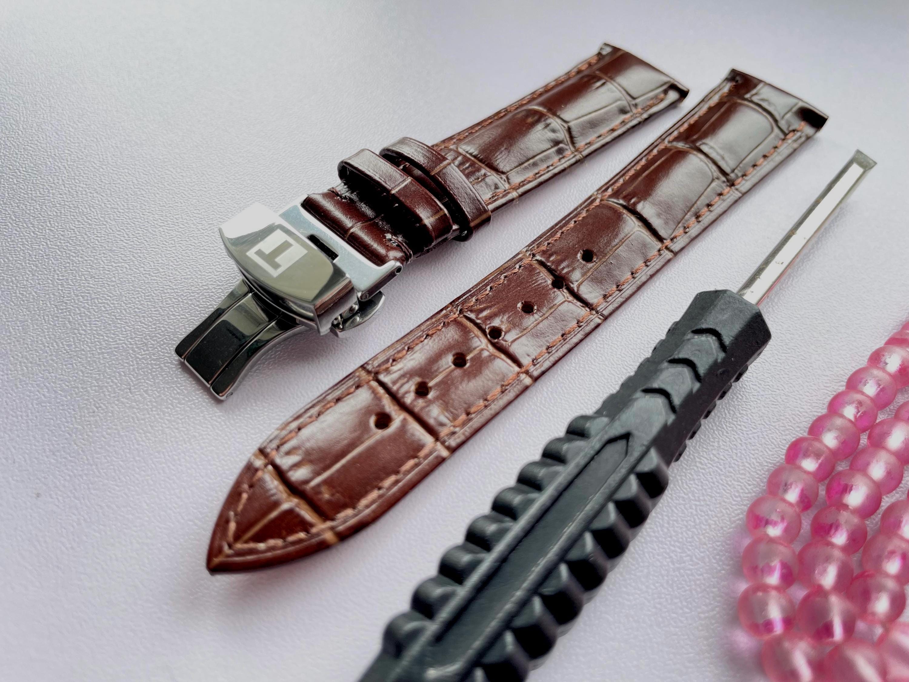 Cinturino per orologio Tissot in pelle marrone da 18/19/20 mm con chiusura deployante con pulsante i...