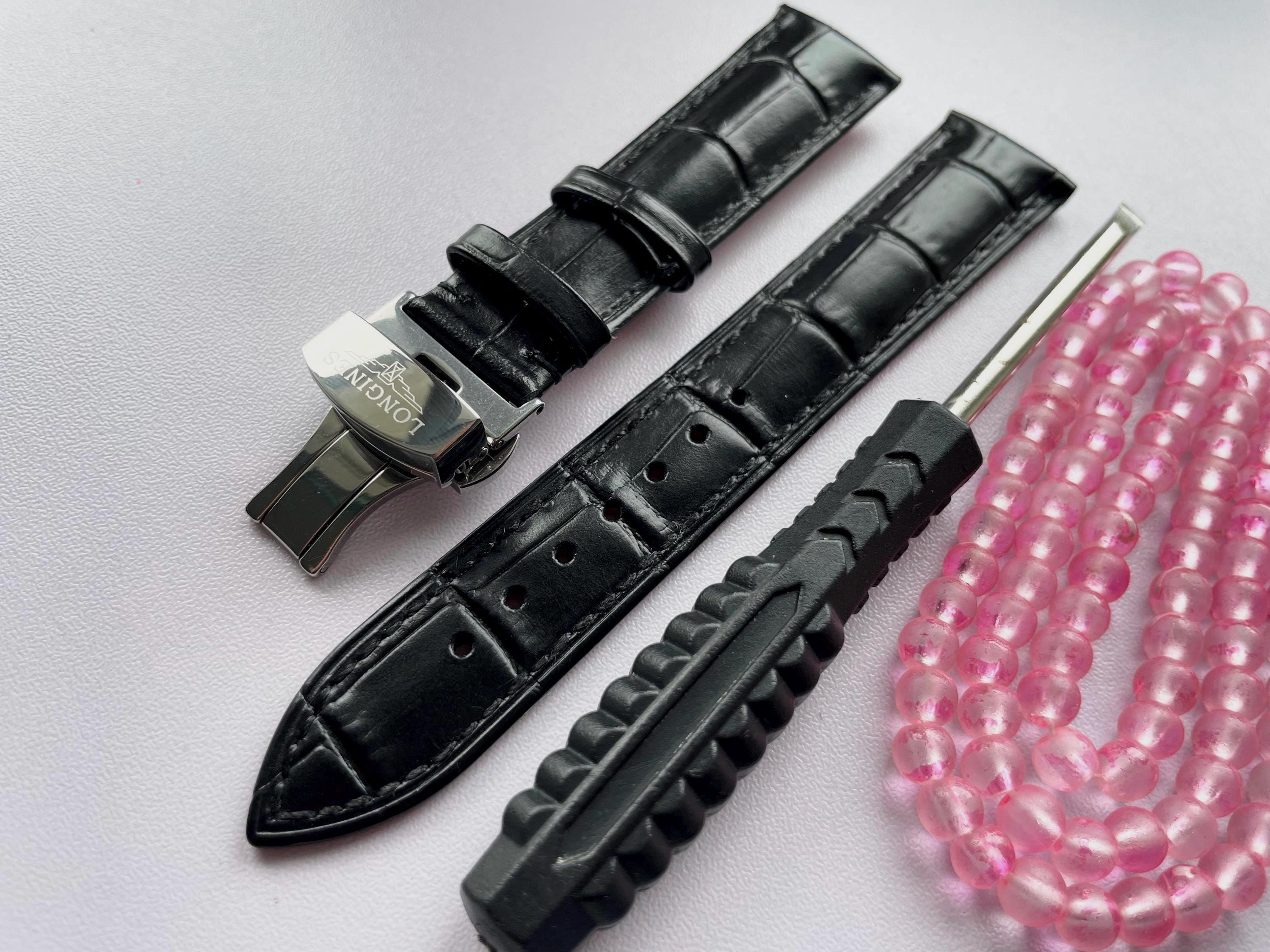Cinturino per orologio Longines in pelle nera da 18/19/20 mm con ch...
