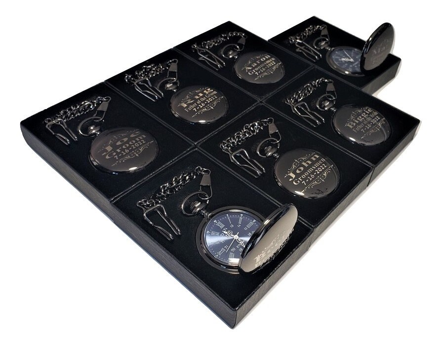 8 orologi da tasca incisi - Numeri romani blu - Regalo inciso per l...