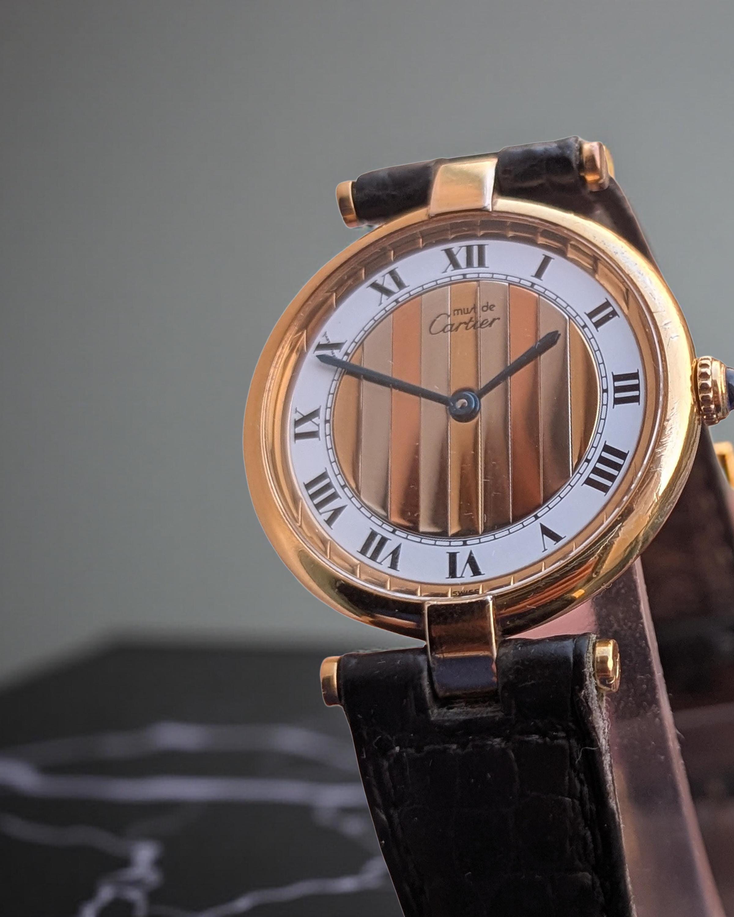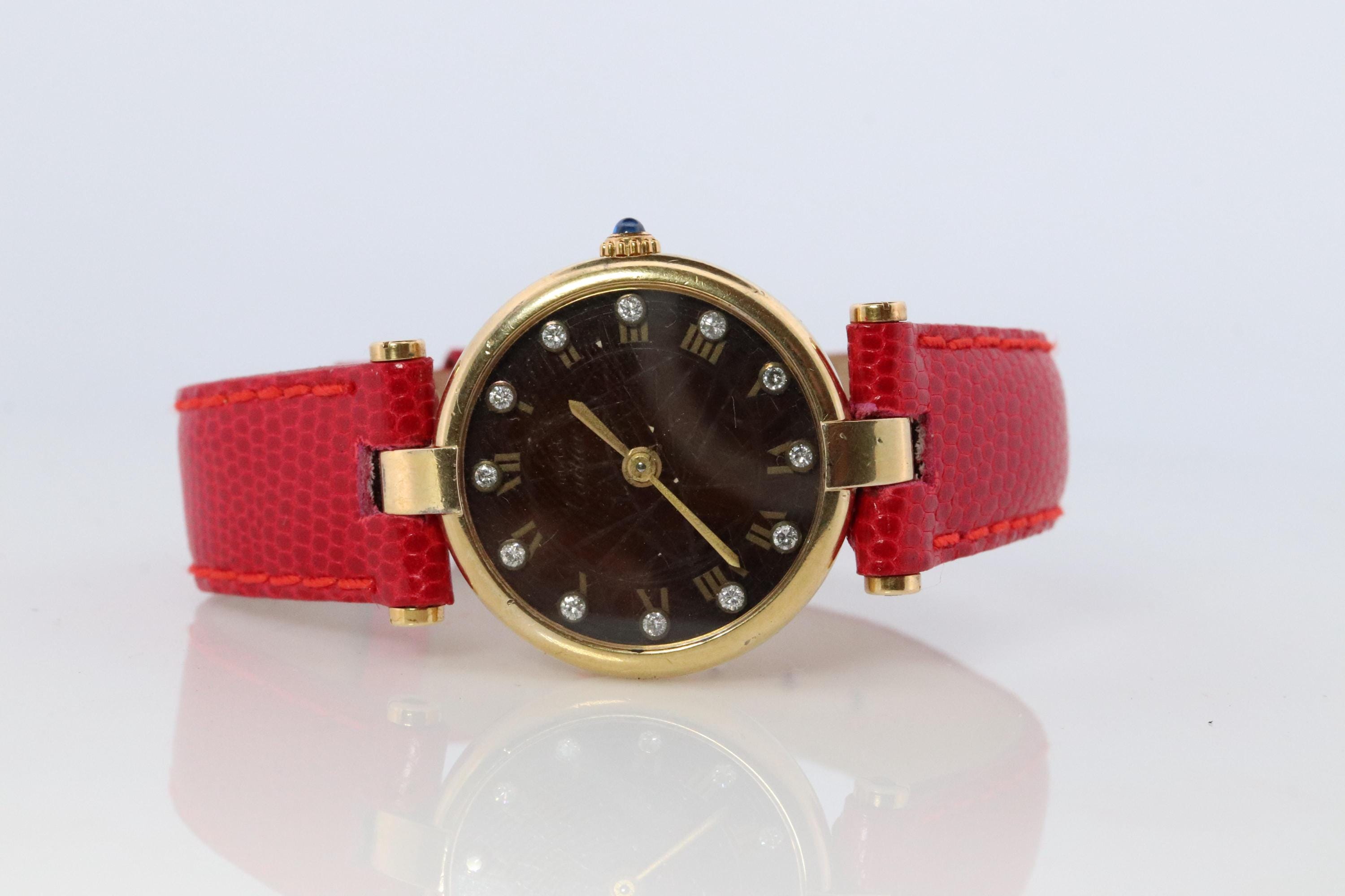 Orologio Cartier autentico. Must de Cartier Vendome vintage Raro quadrante Diamond Spider marrone sc...
