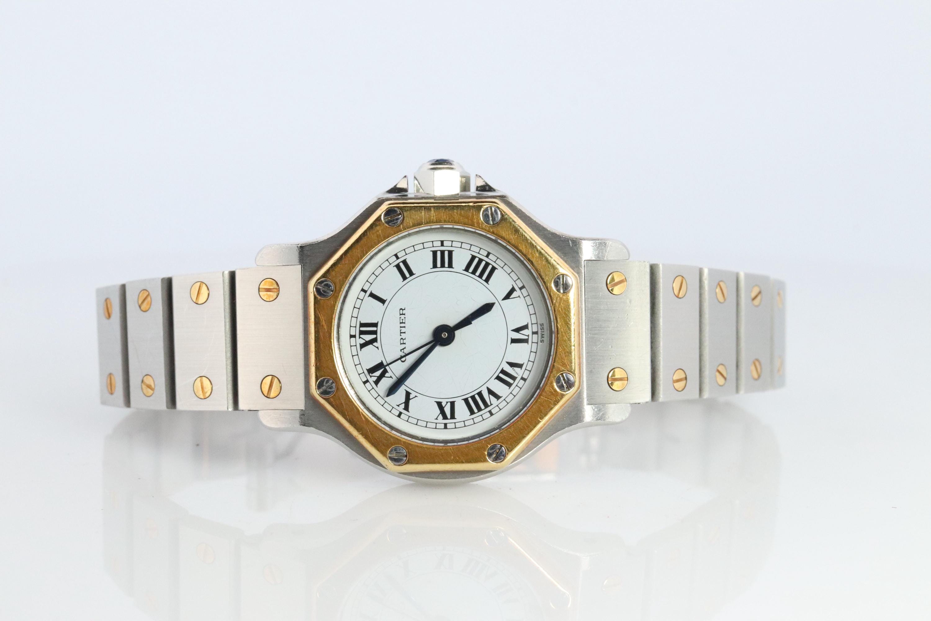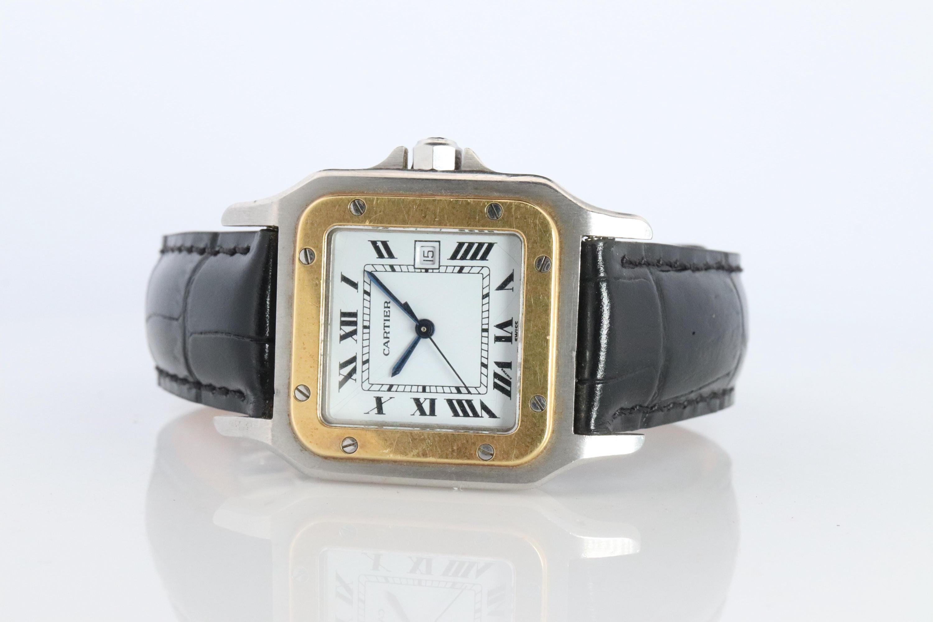 Un orologio da donna Cartier 18k vintage del 1980 con cinturino Cartier e fibbia originale Cartier 1...