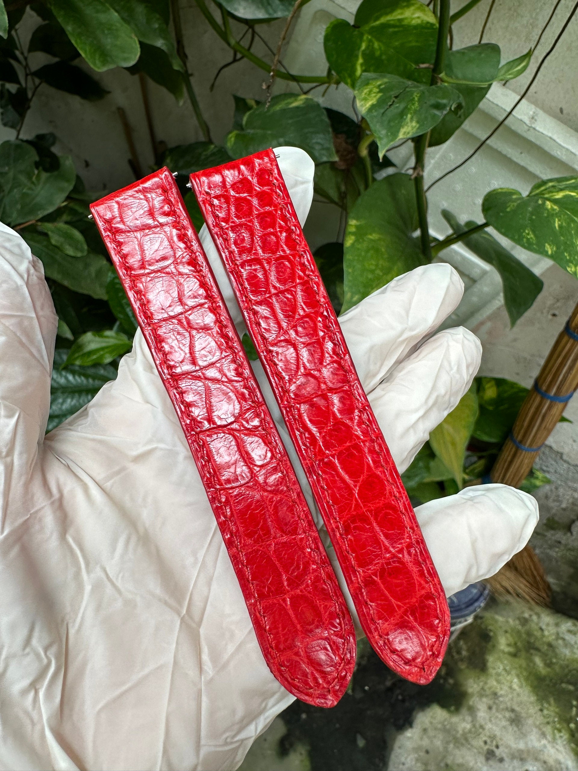 Cinturino per orologio da polso in vera pelle rossa fatto a mano, d...