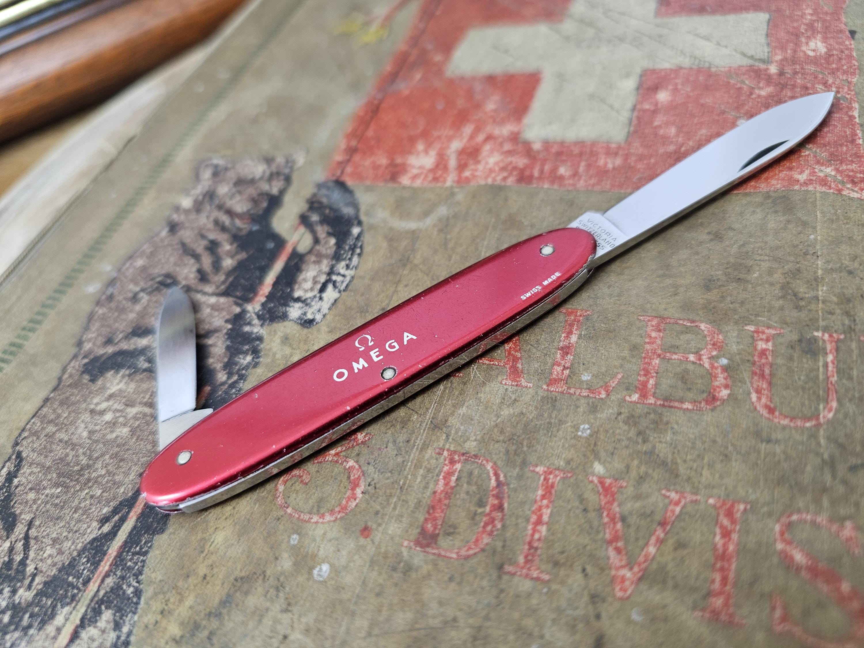 Usato. In condizioni vintage, con segni sul manico. Orologi vintage Omega, Victorinox Alox Secretary...