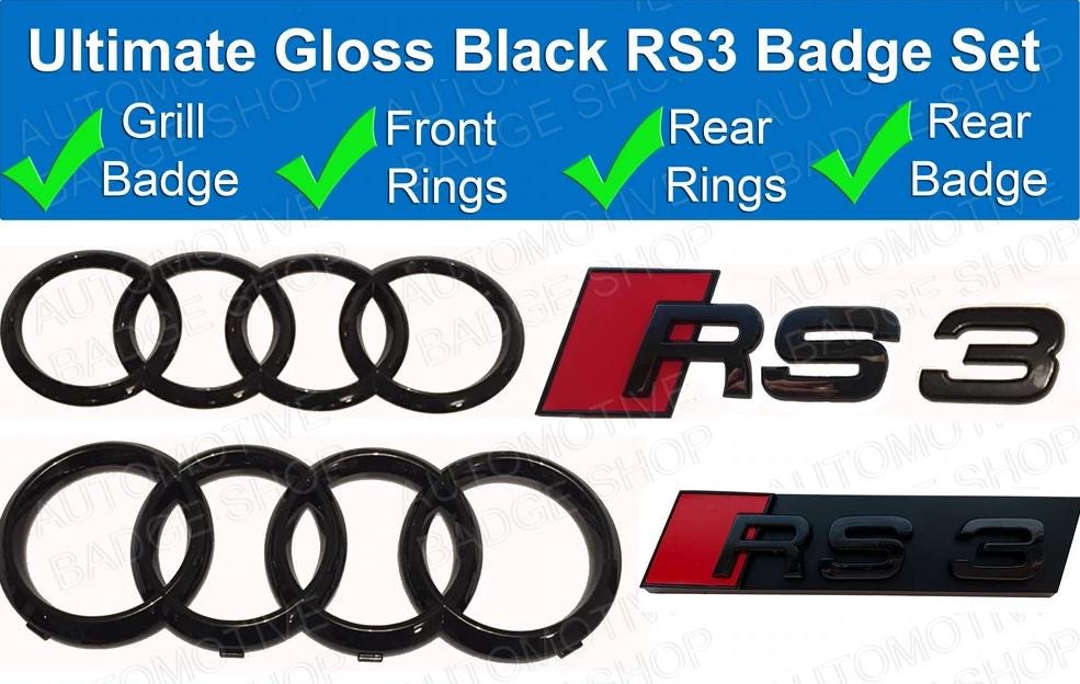 NUOVO DI ZECCA: 1 anello anteriore e posteriore nero lucido / griglia RS3 / stemma del bagagliaio RS...