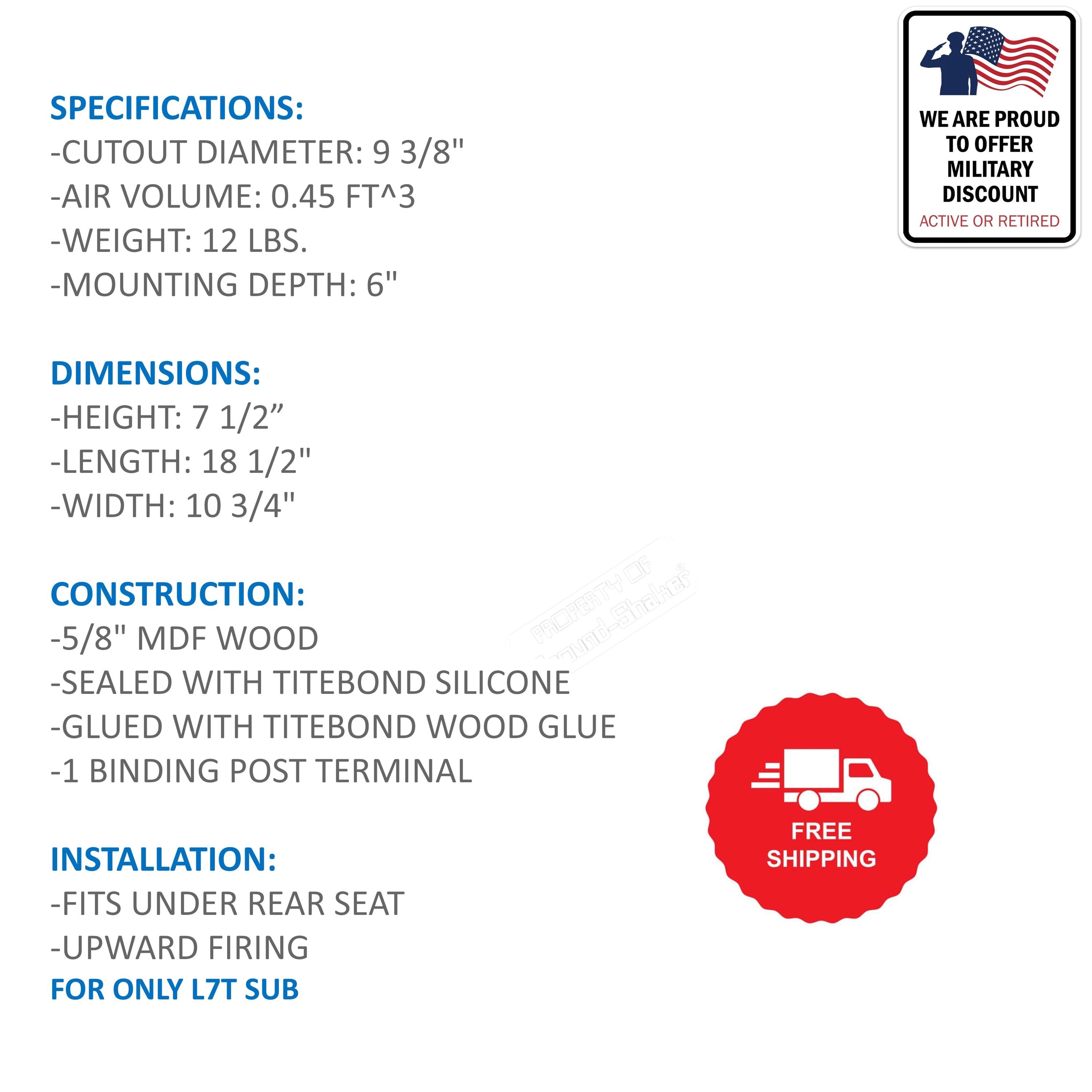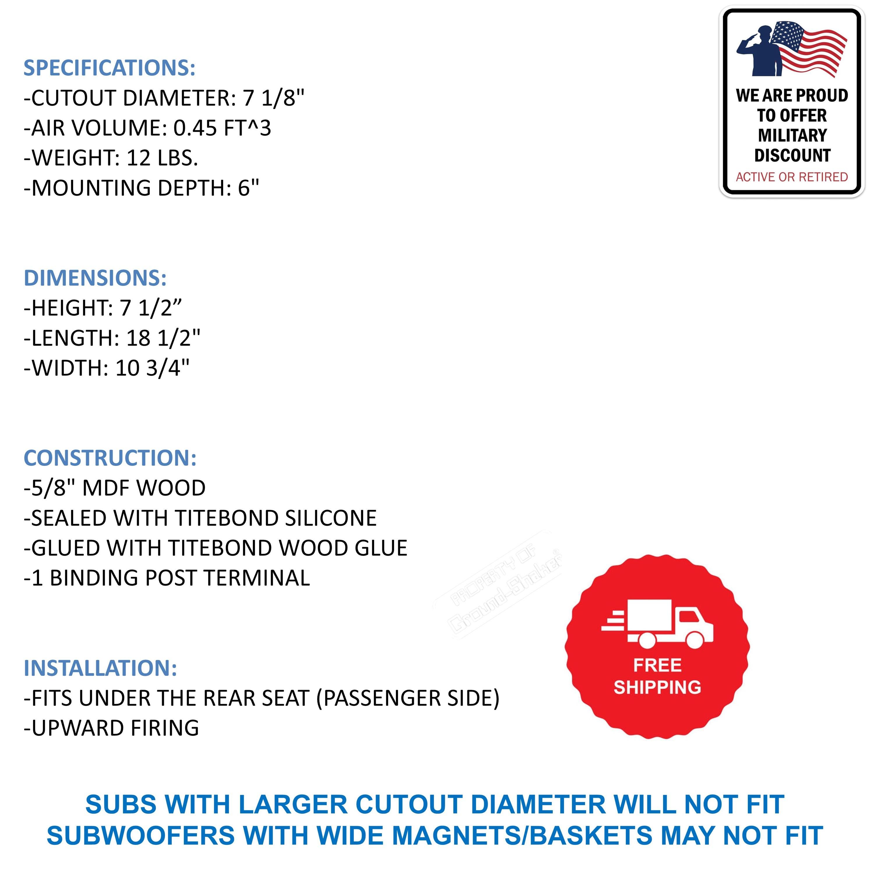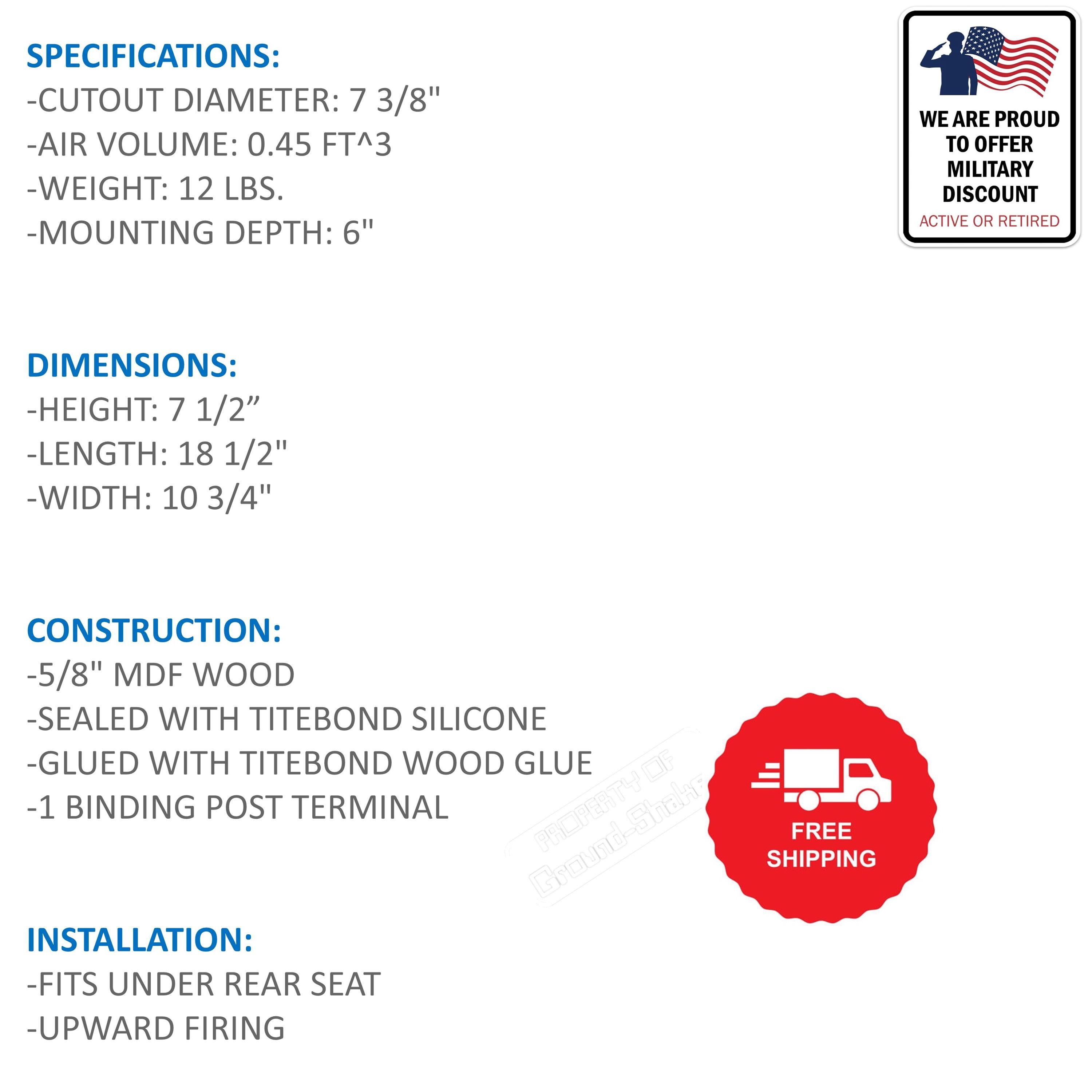 "SUB BOX NERO SIGILLATO SINGOLO DA 8\", ADATTO A FORD MAVERICK 22-26 (LATO PASSEGGERO) SPE...