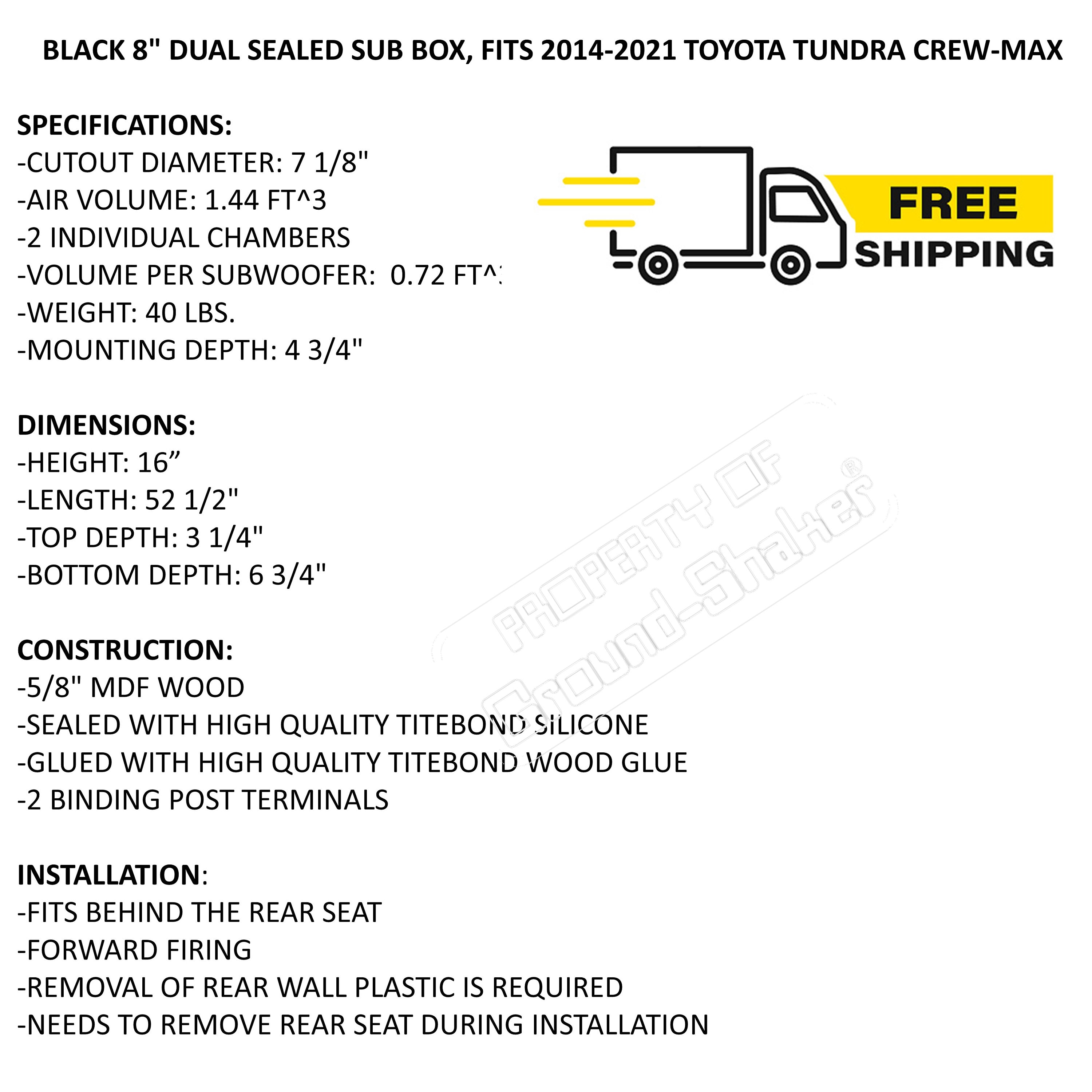 "SUBBOX NERO DA 8\" A DOPPIA SIGILLATURA, ADATTO A TOYOTA TUNDRA CREW-MAX 2014-2021 SPECIF...