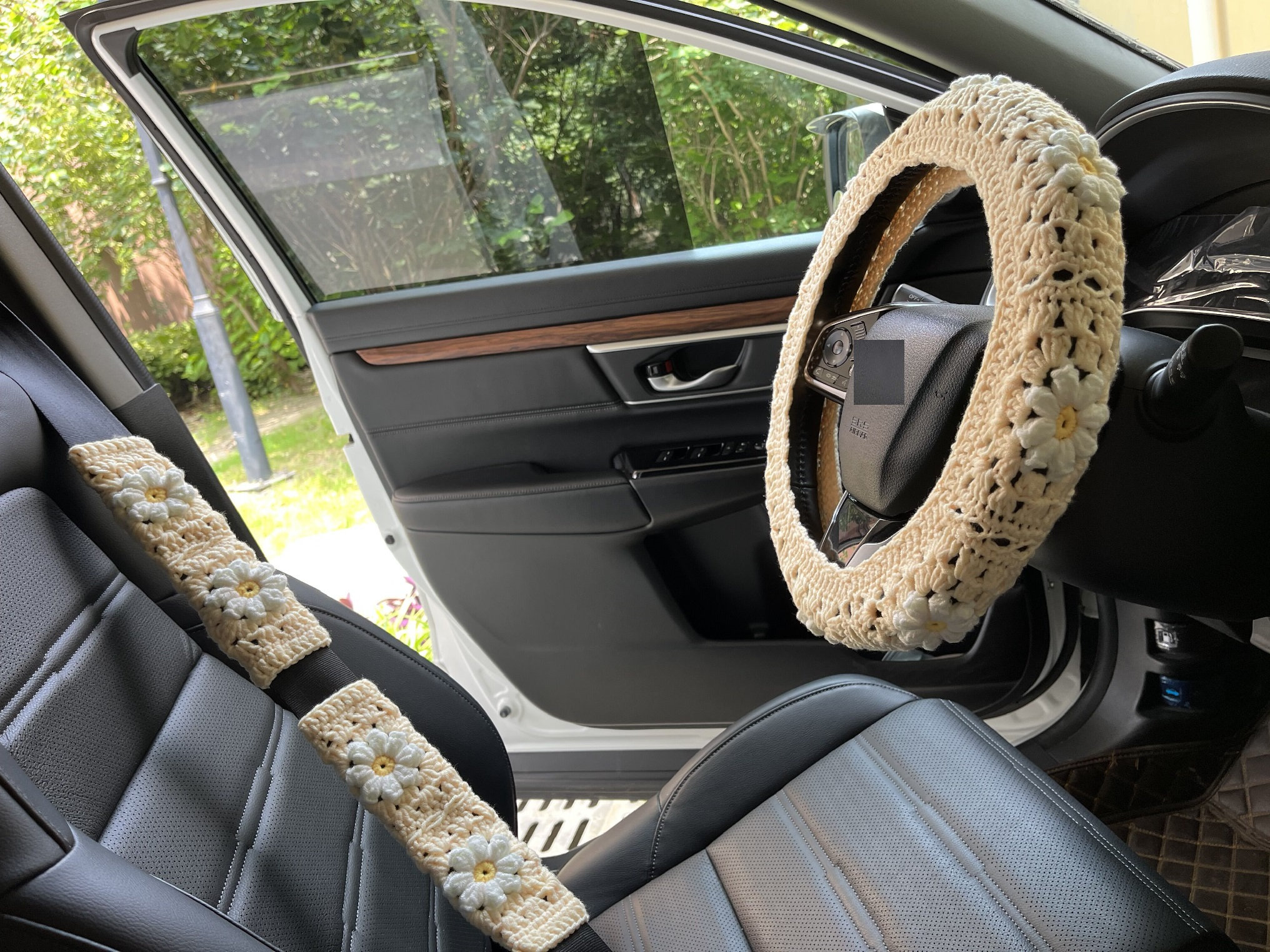 Coprivolante per auto all'uncinetto, coprivolante margherita 3D, co...